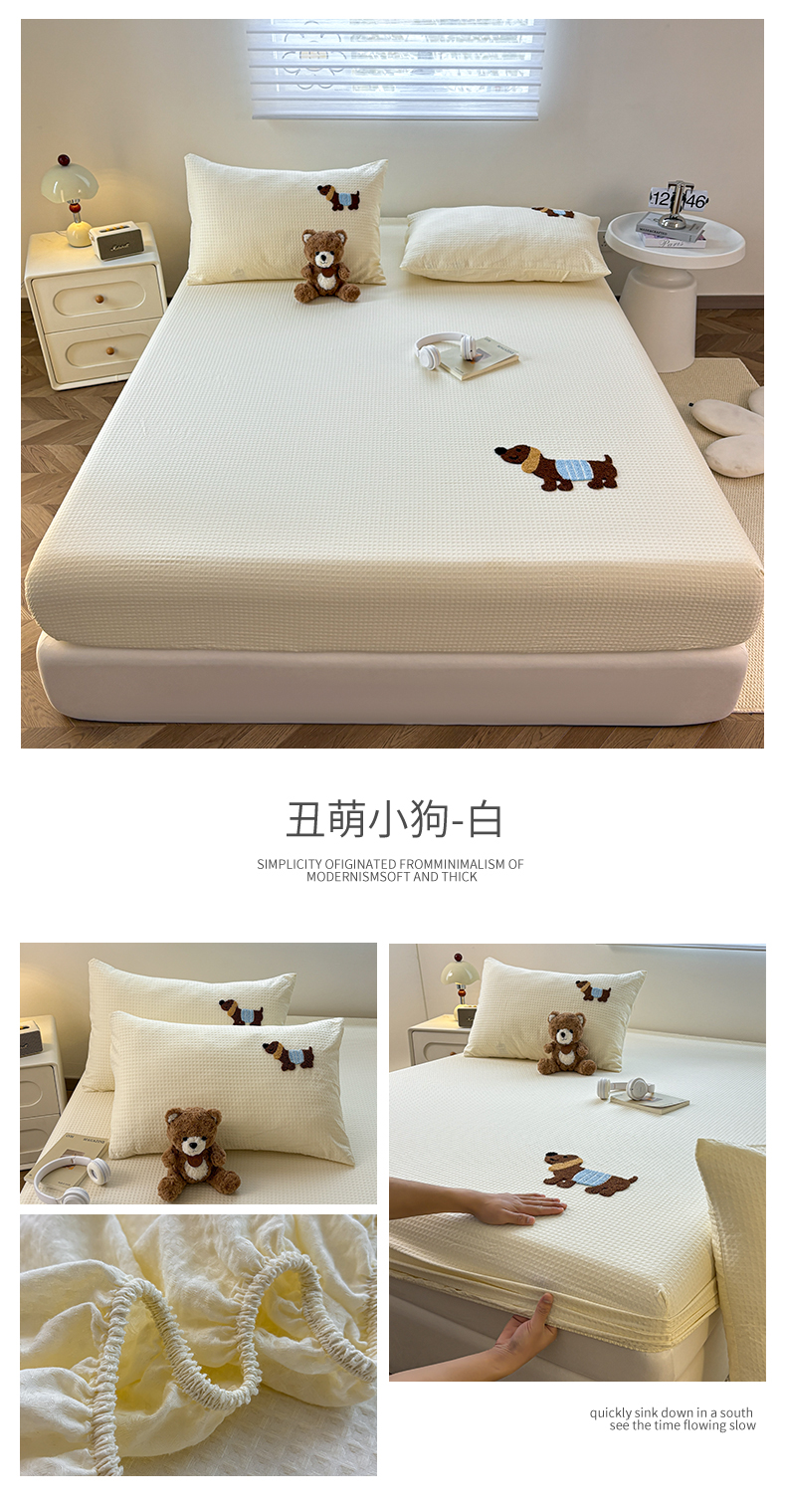 (总)居眠 2025新款A类水洗棉印花夹棉床笠,爱心小熊,波点南瓜,搞怪派对,花园小熊,快乐小汪,萌宠小兔,奇幻兔兔,情系花兔,郁金香紫,字母小狗