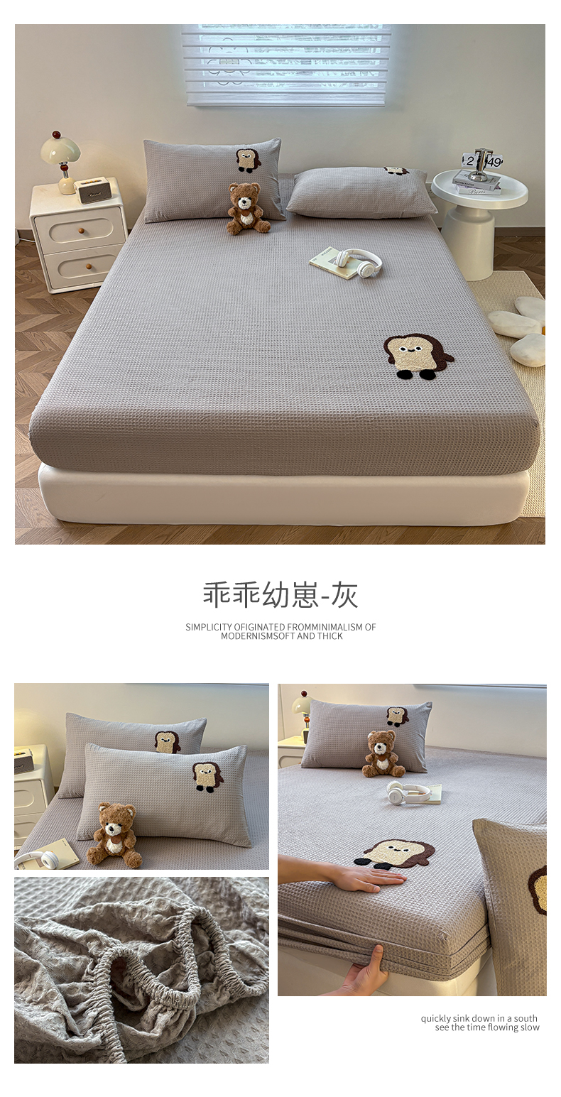 (总)居眠 2024新款防水夹棉大豆床笠-叶链,叶链-白云石,叶链-粉色,叶链-灰色,叶链-卡其,叶链-米白,叶链-雾蓝
