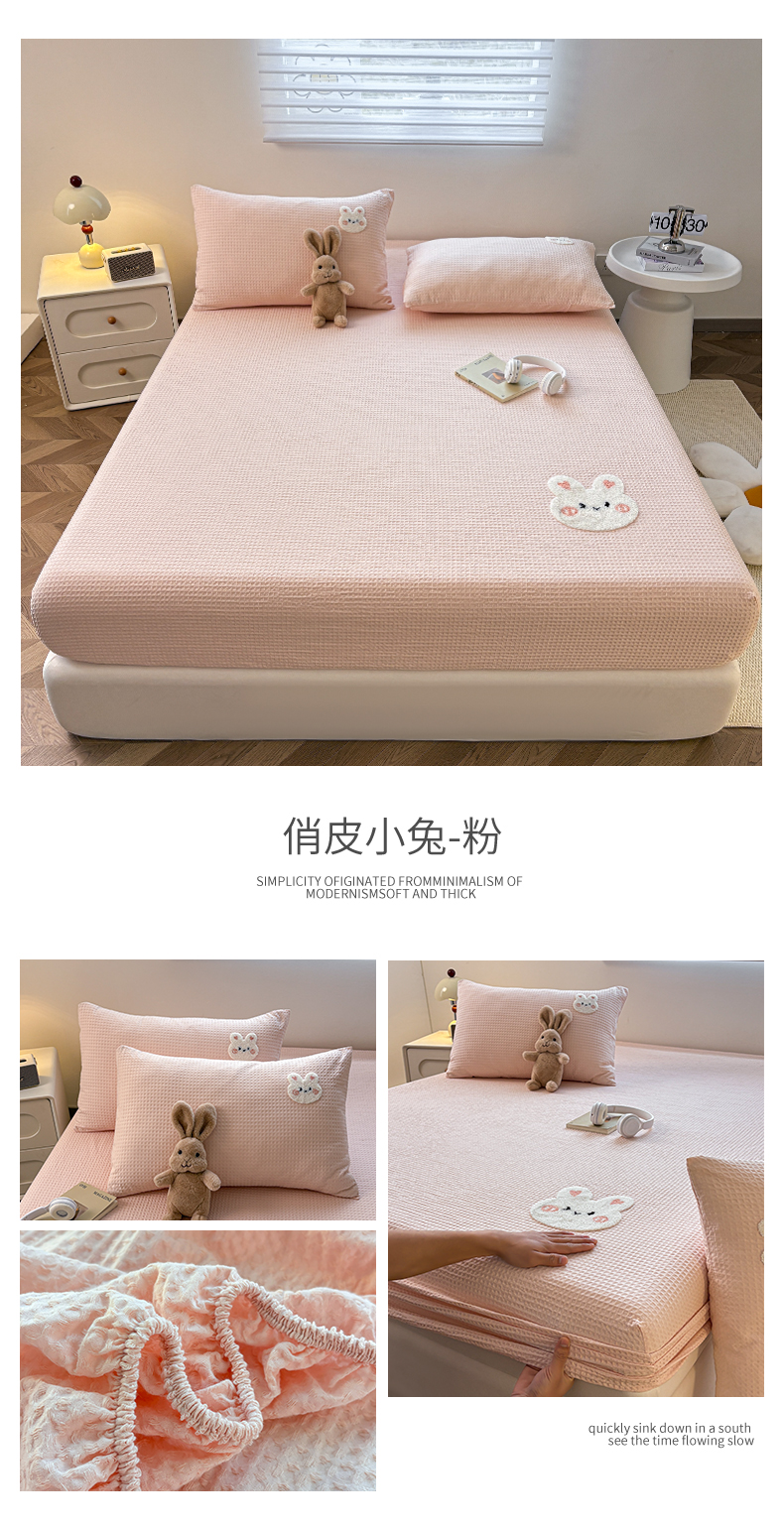 (总)居眠 2025新款防水夹棉床笠-清雅,清雅-粉色,清雅-灰色,清雅-卡其,清雅-绿色,清雅-米白,清雅-深蓝
