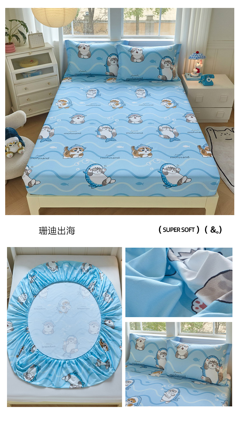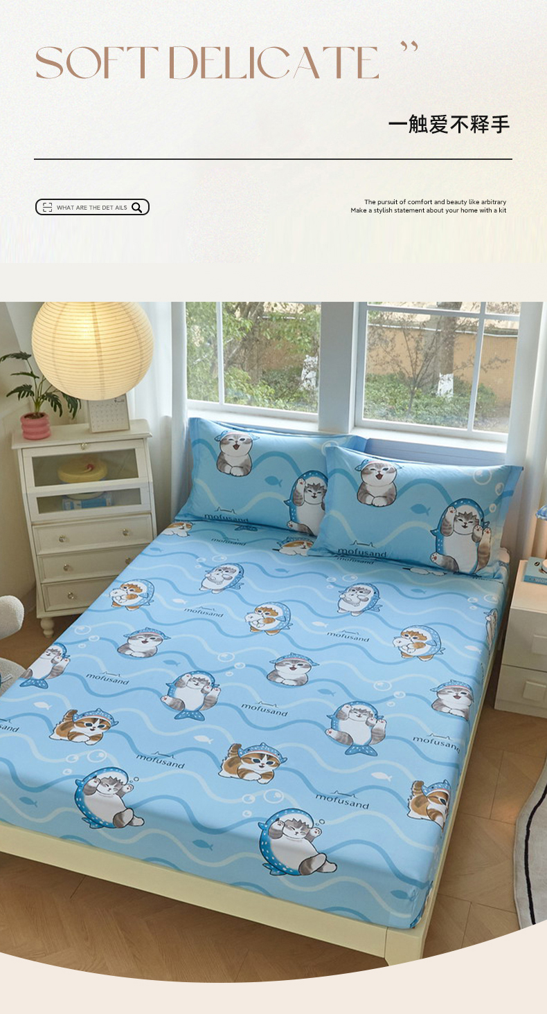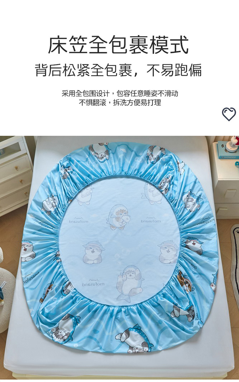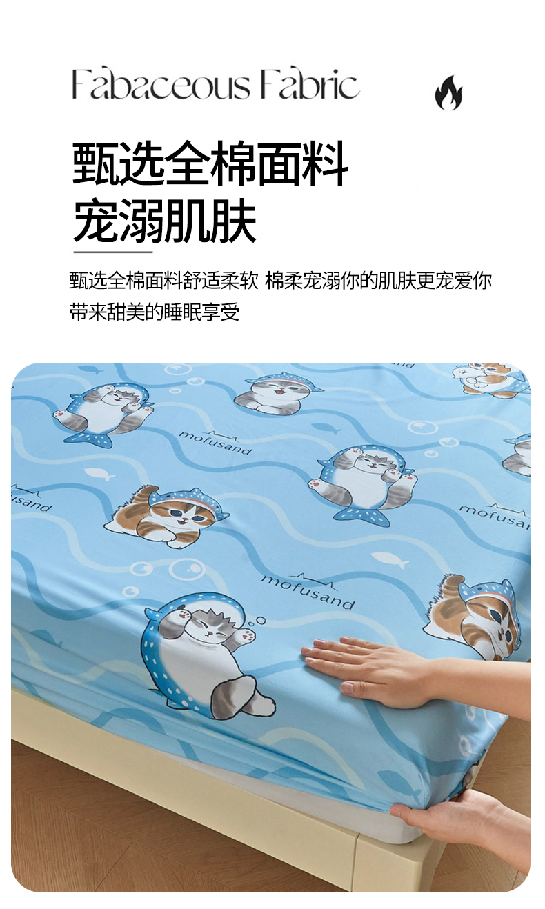 商品名称:(总)蘭菲家纺 2026新款全棉大版鲨鱼猫套件-猫福系列单床笠