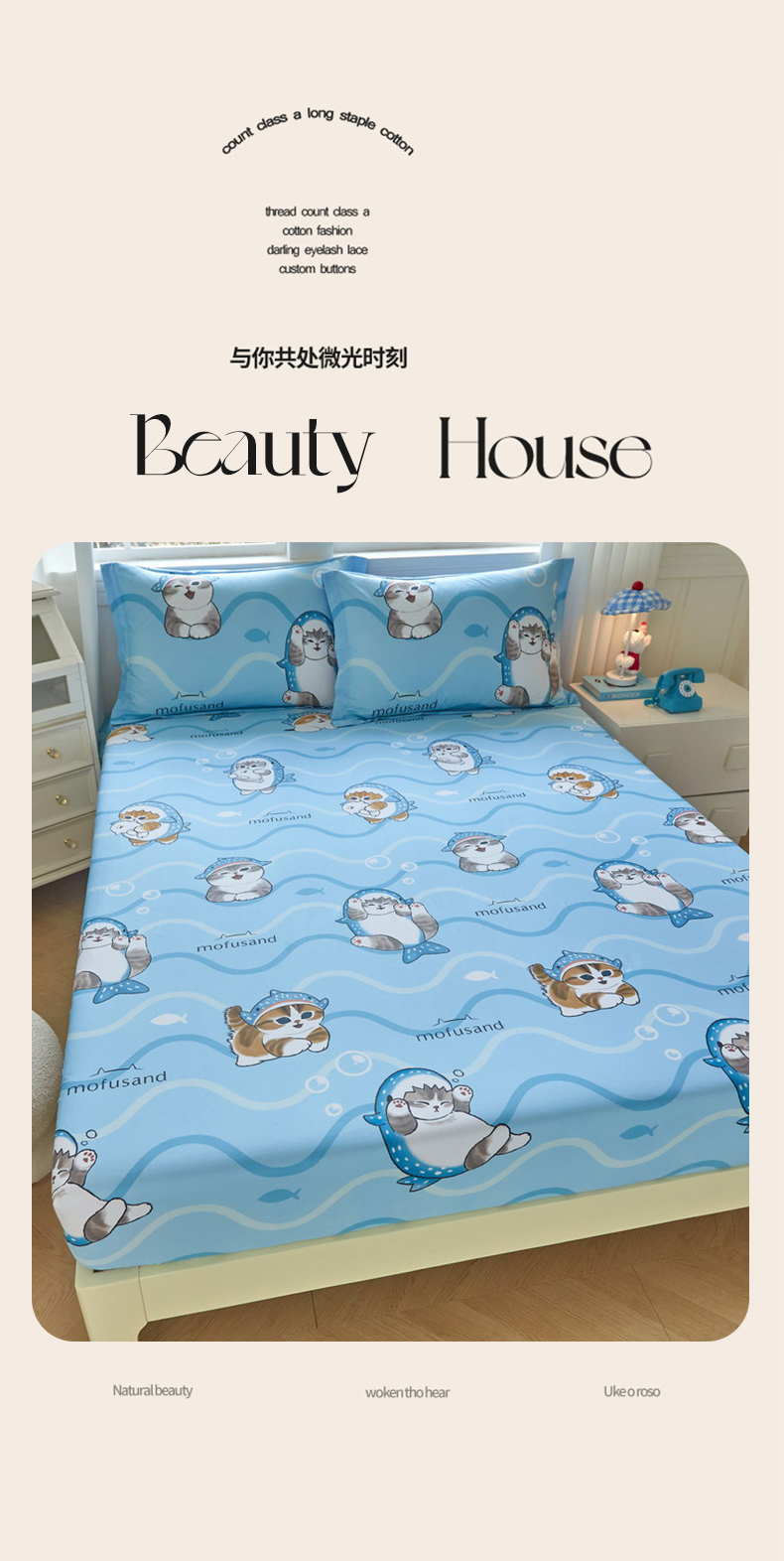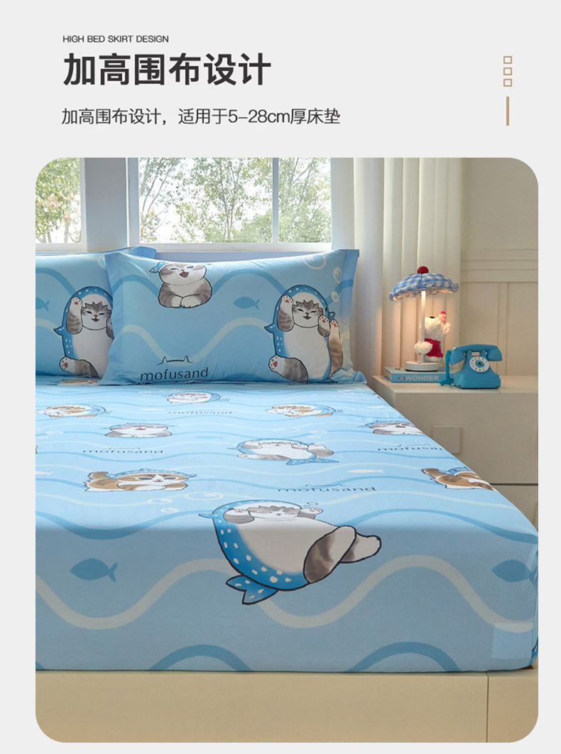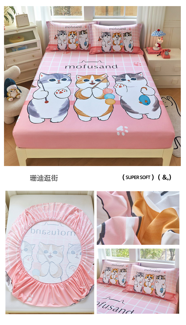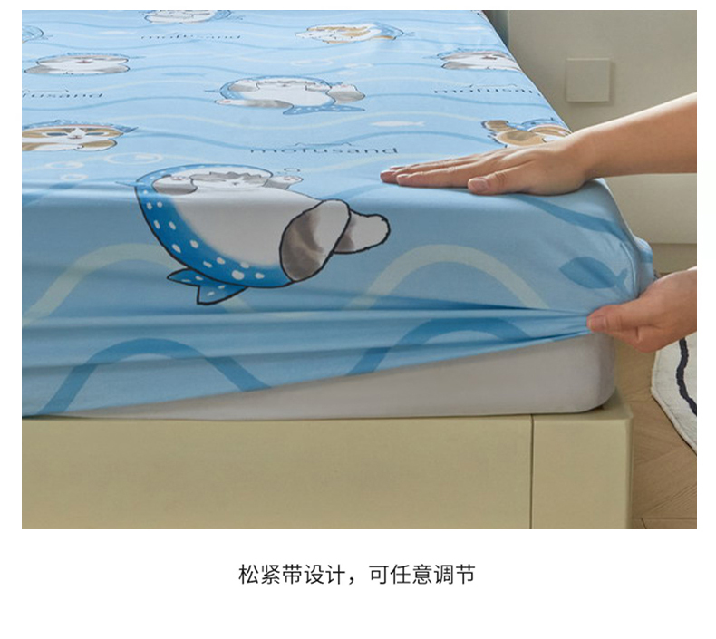 商品名称:(总)蘭菲家纺 2026新款全棉大版鲨鱼猫套件-猫福系列单床笠