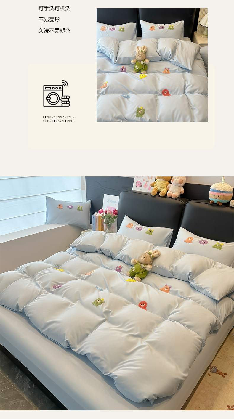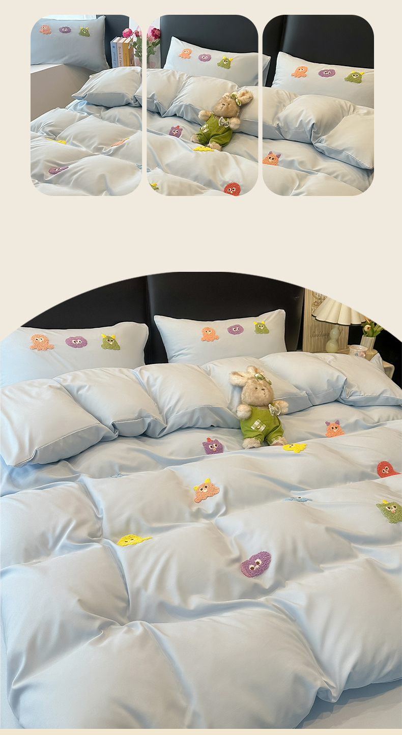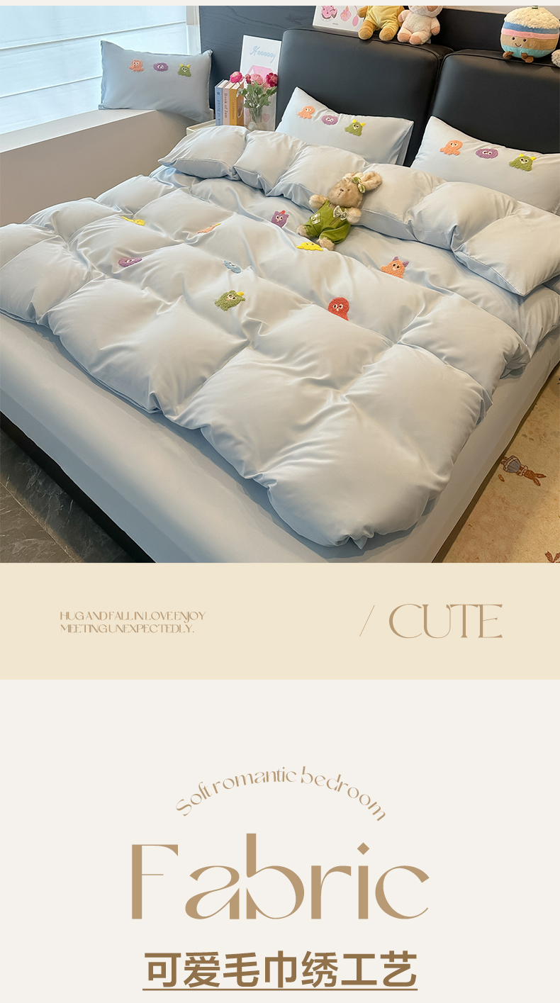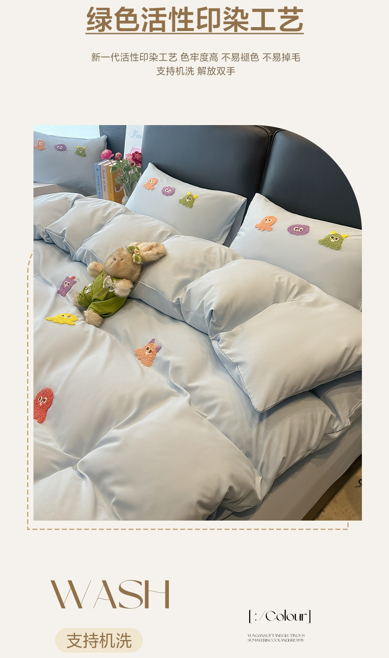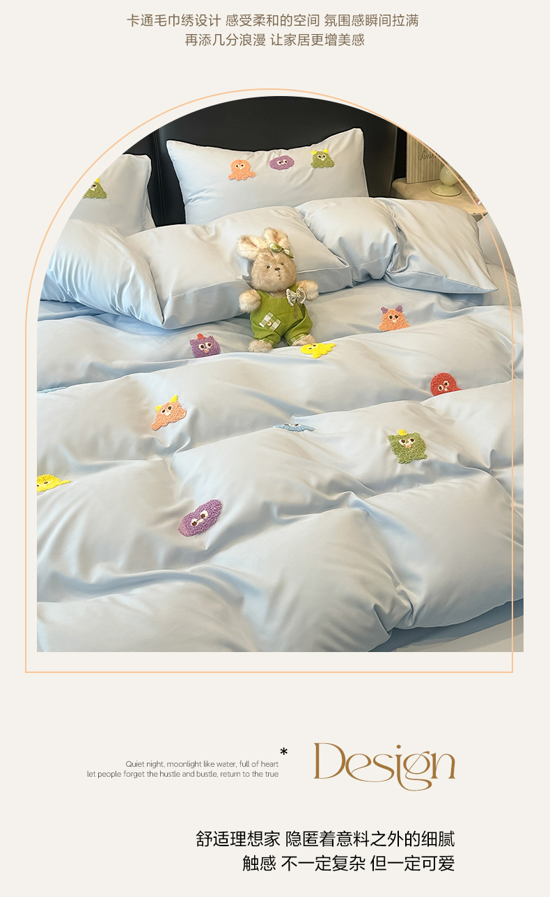 当前位置: 91家纺网 > 商品网购 > 床品套件 > 四件套 > 水洗棉四件套 > 韩巢家纺 2026新款水洗棉毛巾绣四件套 小精灵-浅蓝
