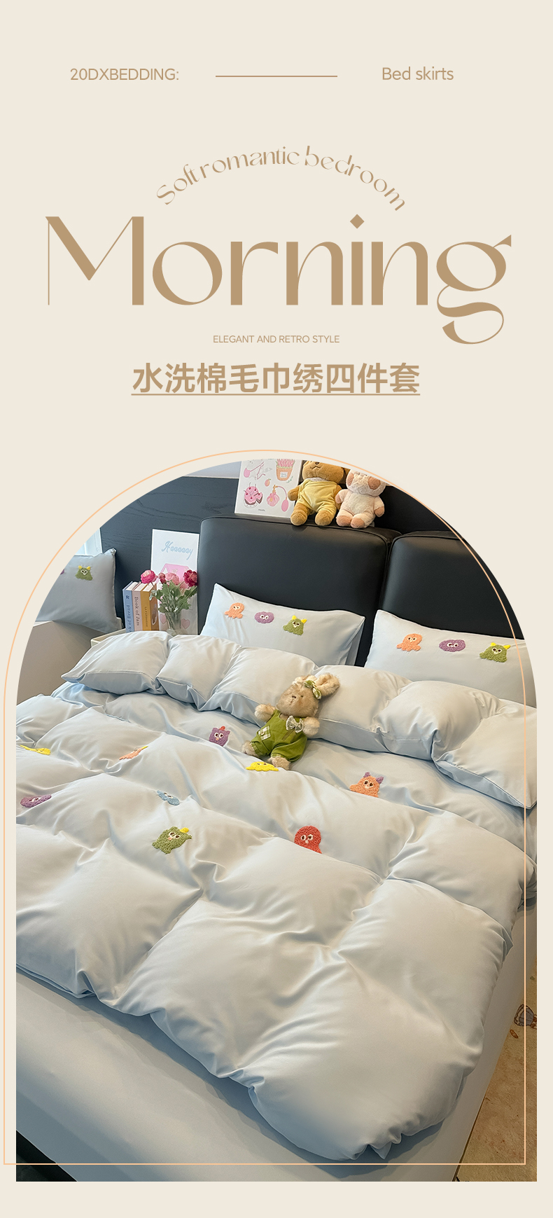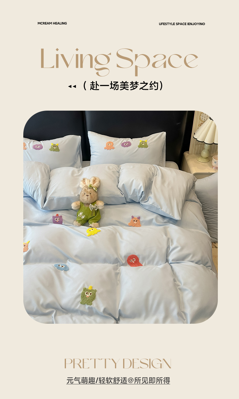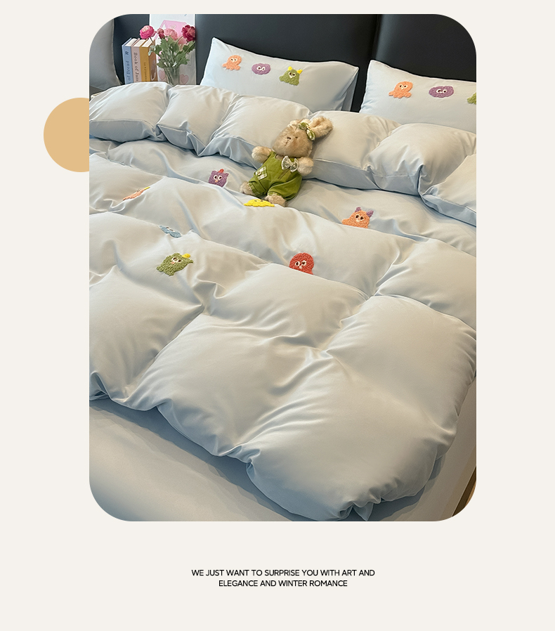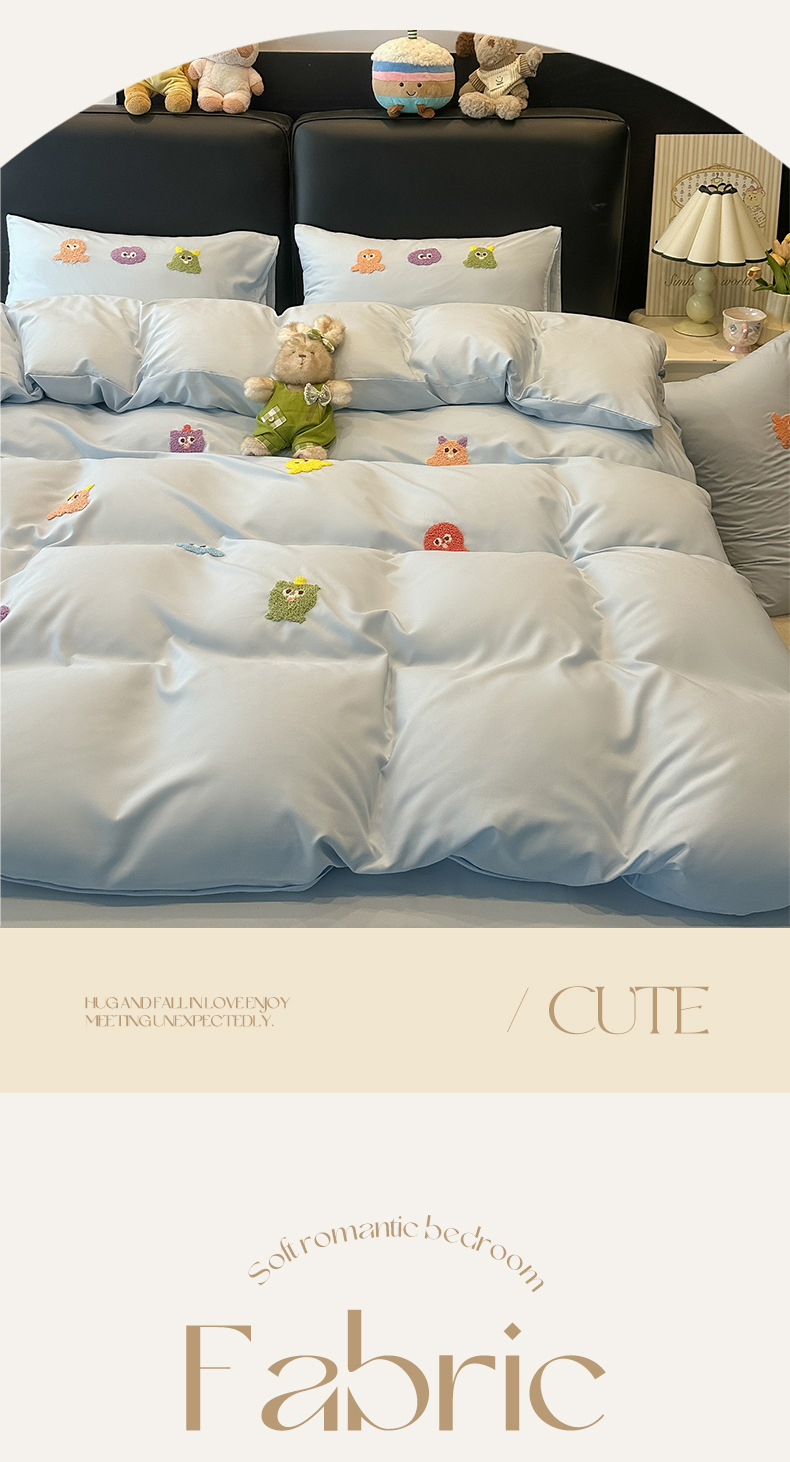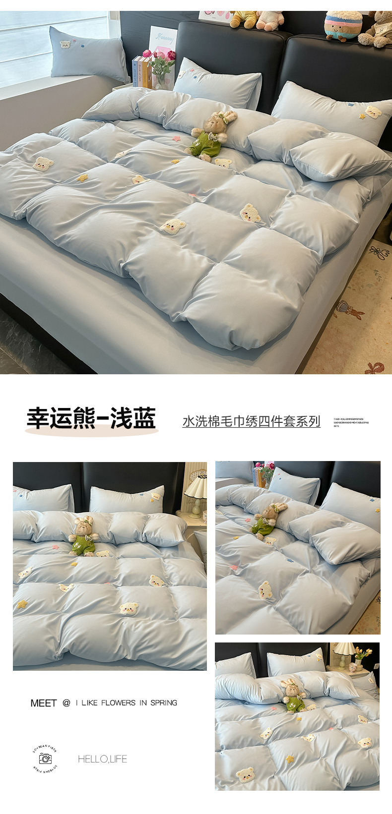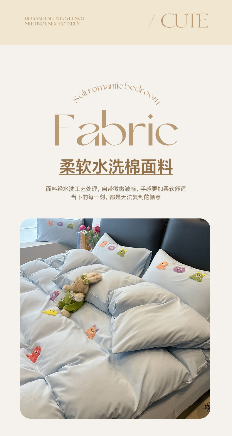 当前位置: 91家纺网 > 商品网购 > 床品套件 > 四件套 > 水洗棉四件套 > 韩巢家纺 2026新款水洗棉毛巾绣四件套 小精灵-浅蓝
