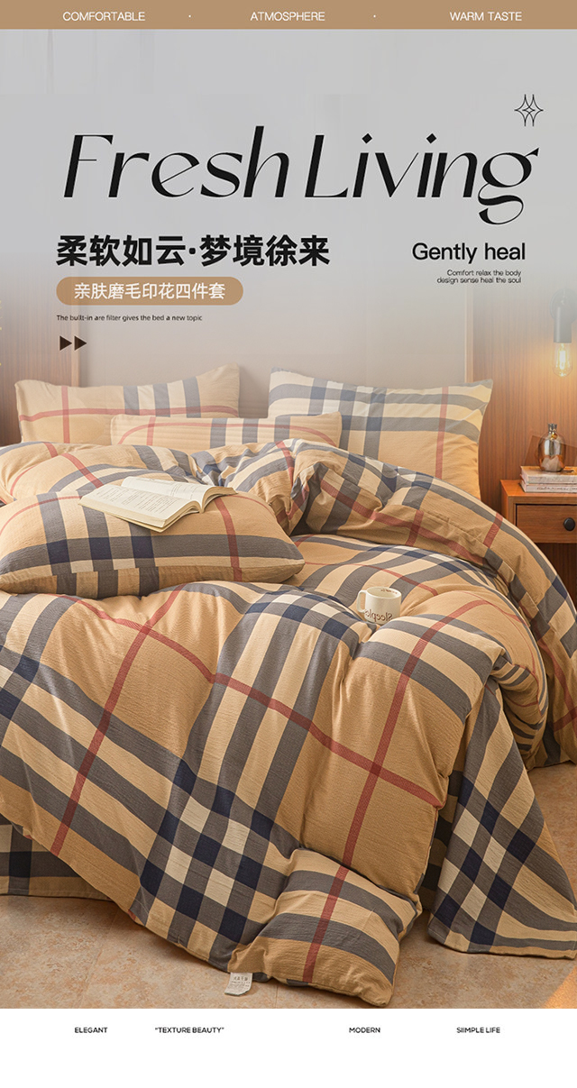 当前位置: 91家纺网 > 商品网购 > 床品套件 > 四件套 > 水洗棉四件套 > 友承家纺 2026最新款水洗棉无印风双层纱木棉四件套被套床单卧室床上用品学生宿舍被罩三件套床单枕套 宝利小格