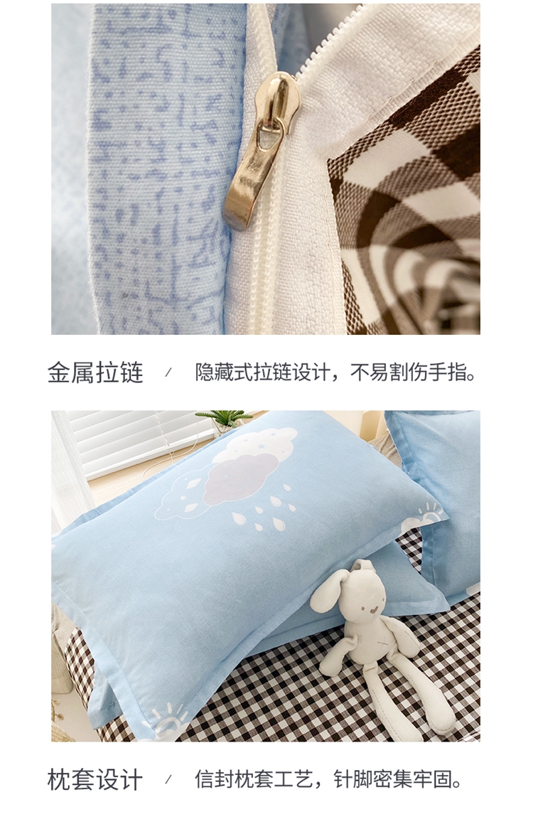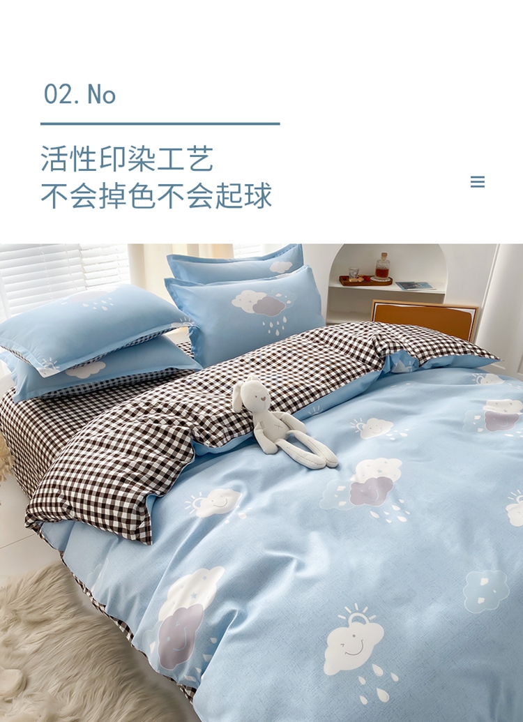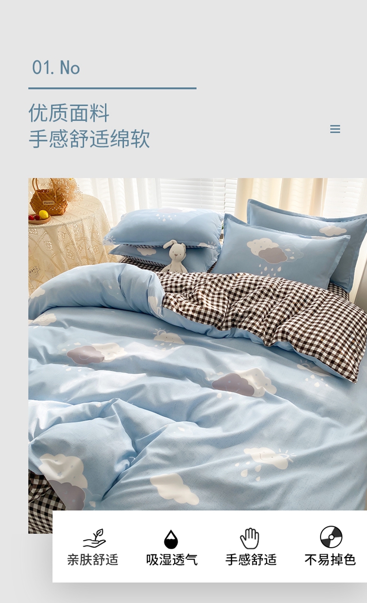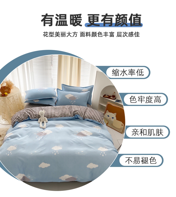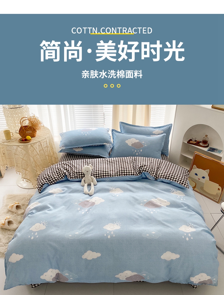 商品名称:友承家纺 2026新款床上用品磨毛水洗棉四件套被单被套学生宿舍单人三件套被罩单件四季通用 云朵