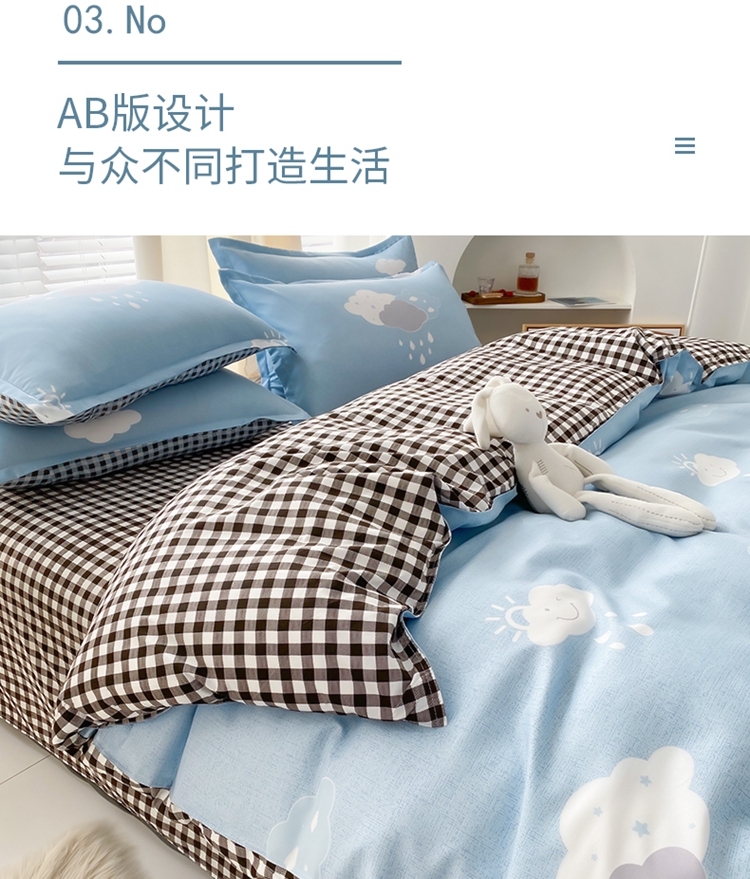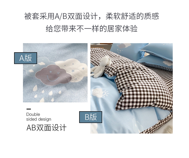 友承家纺 2026新款床上用品磨毛水洗棉四件套被单被套学生宿舍单人三件套被罩单件四季通用 云朵