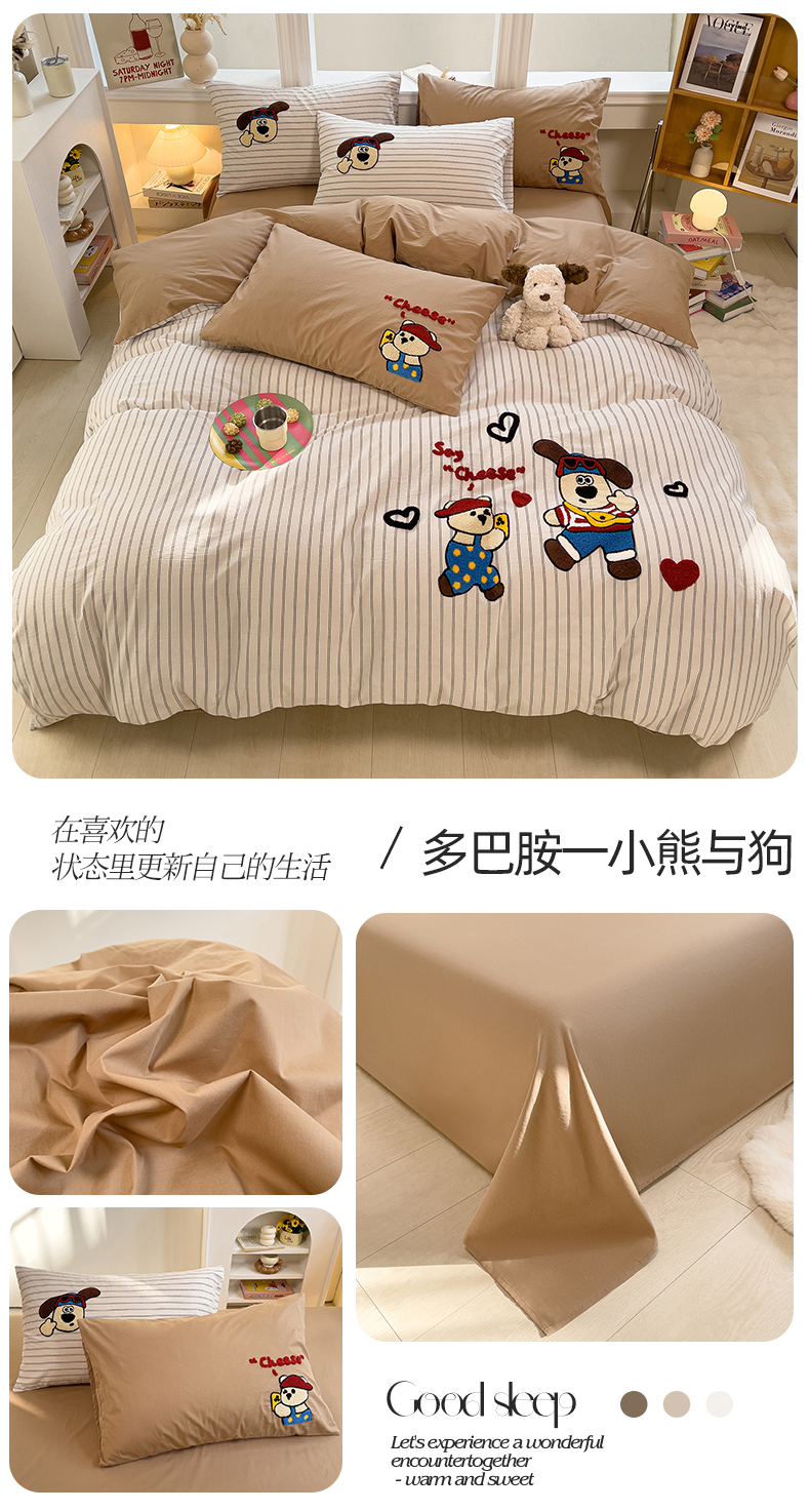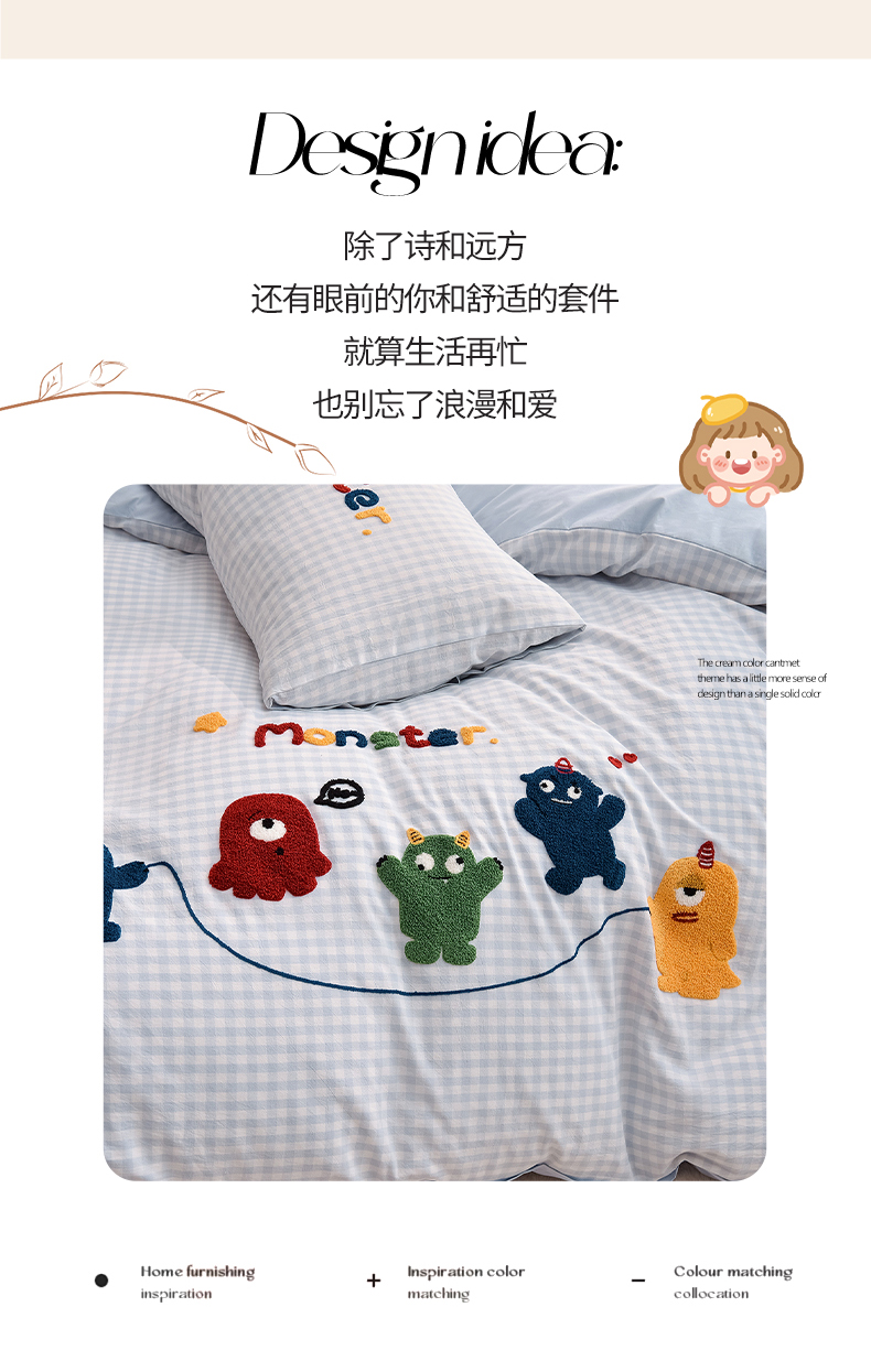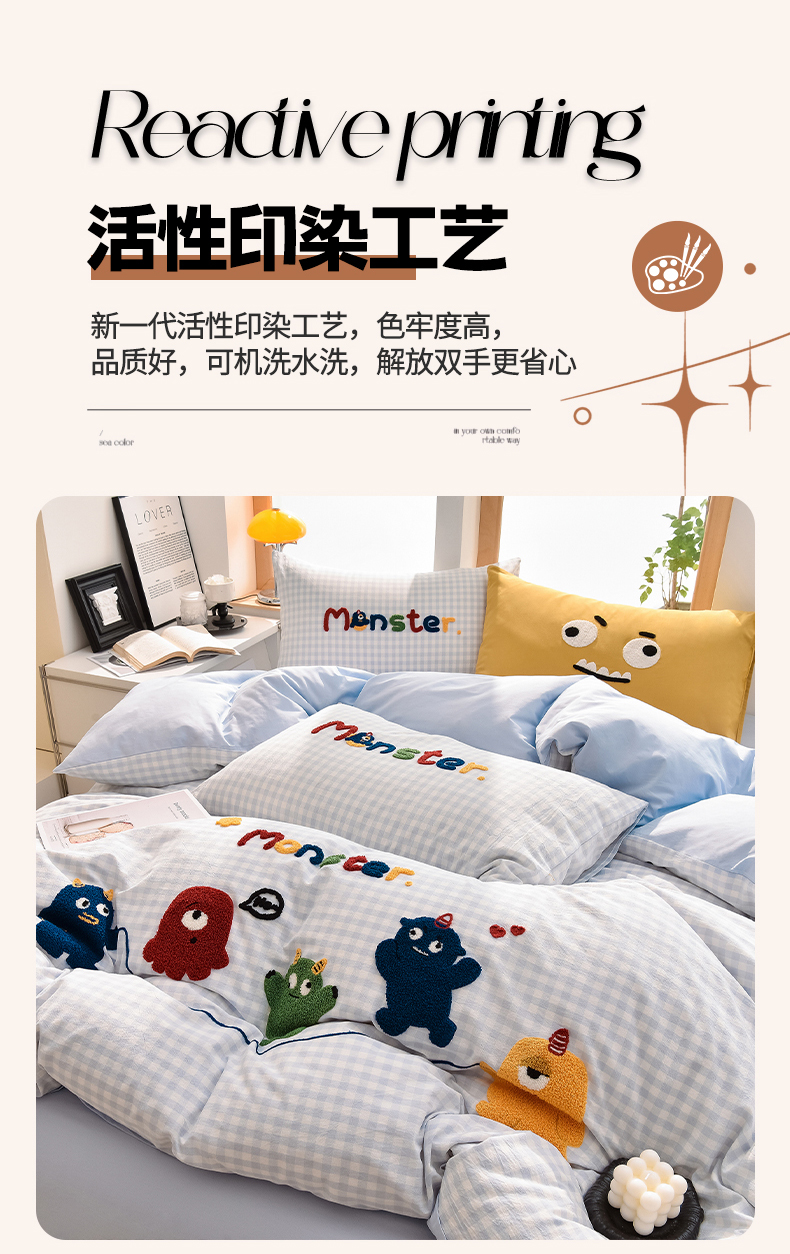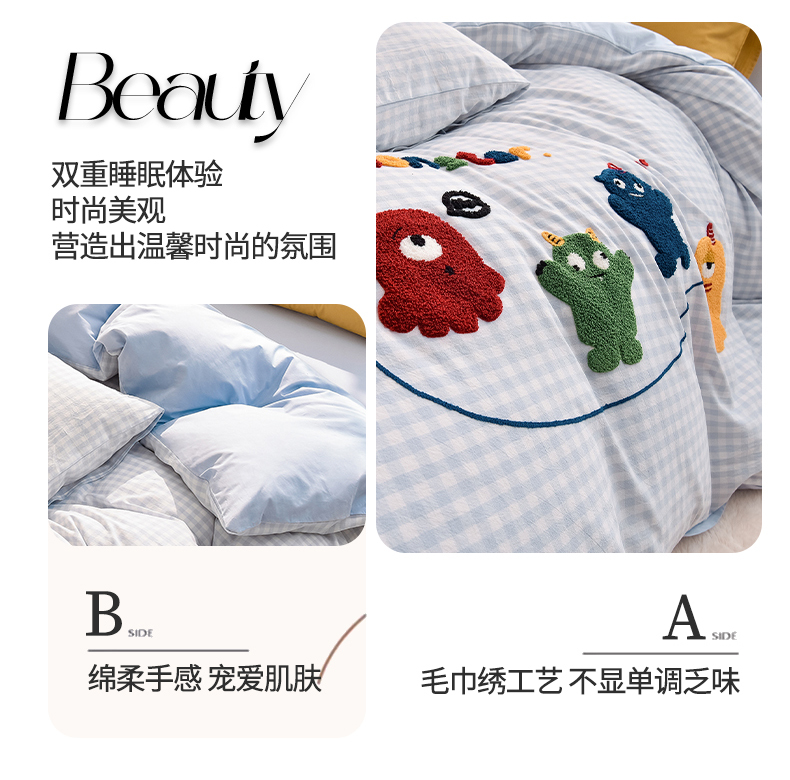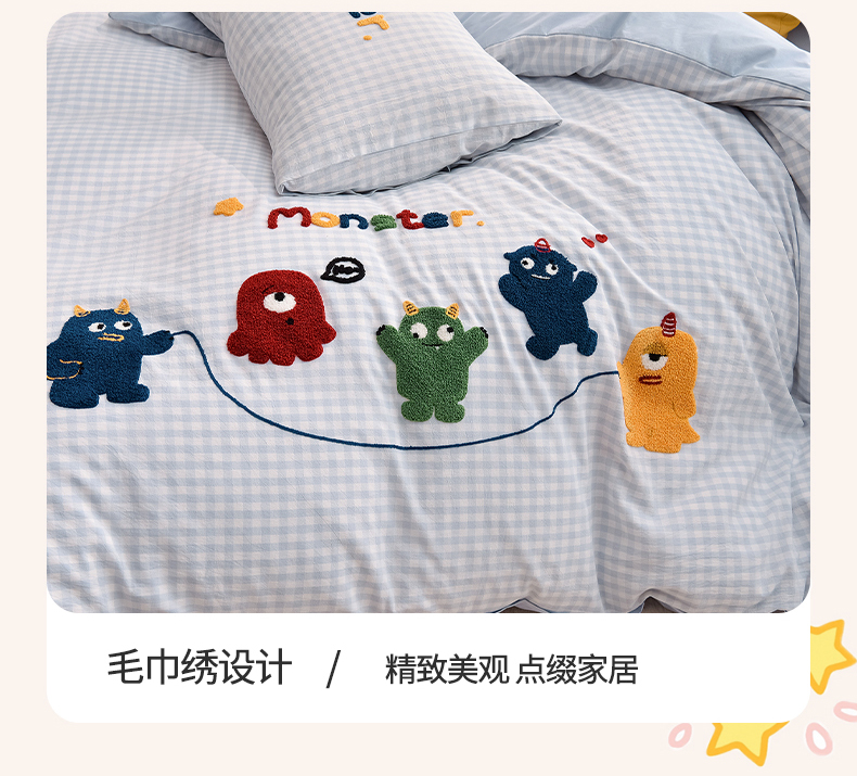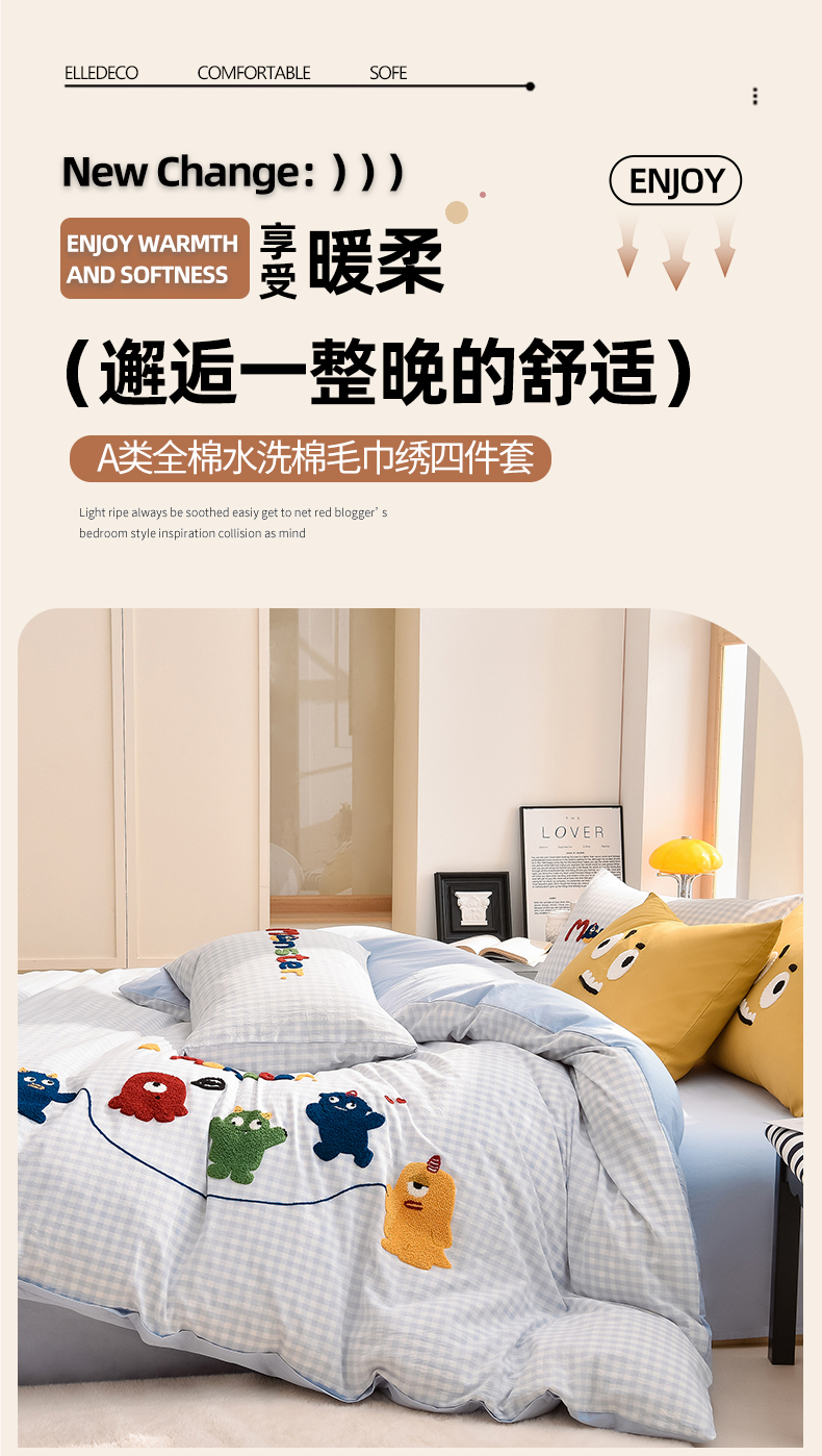 当前位置: 91家纺网 > 商品网购 > 床品套件 > 四件套 > 全棉普通四件套 > 炫拼家纺 2026新款多巴胺系列A类全棉40支水洗棉卡通毛巾绣四件套 多巴胺-一起嗨