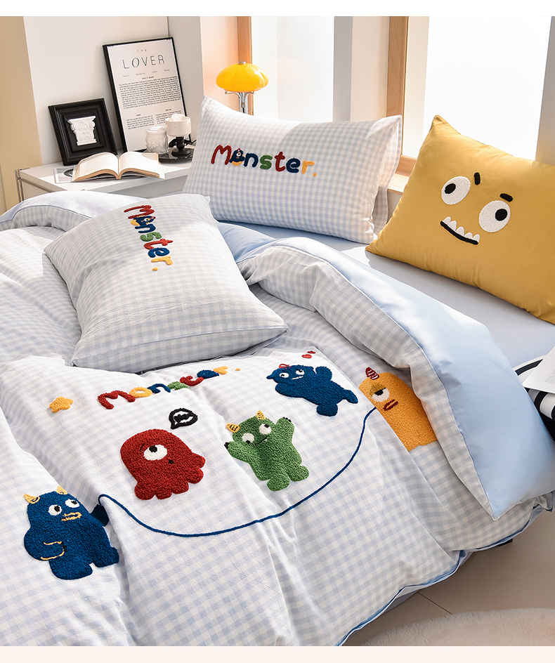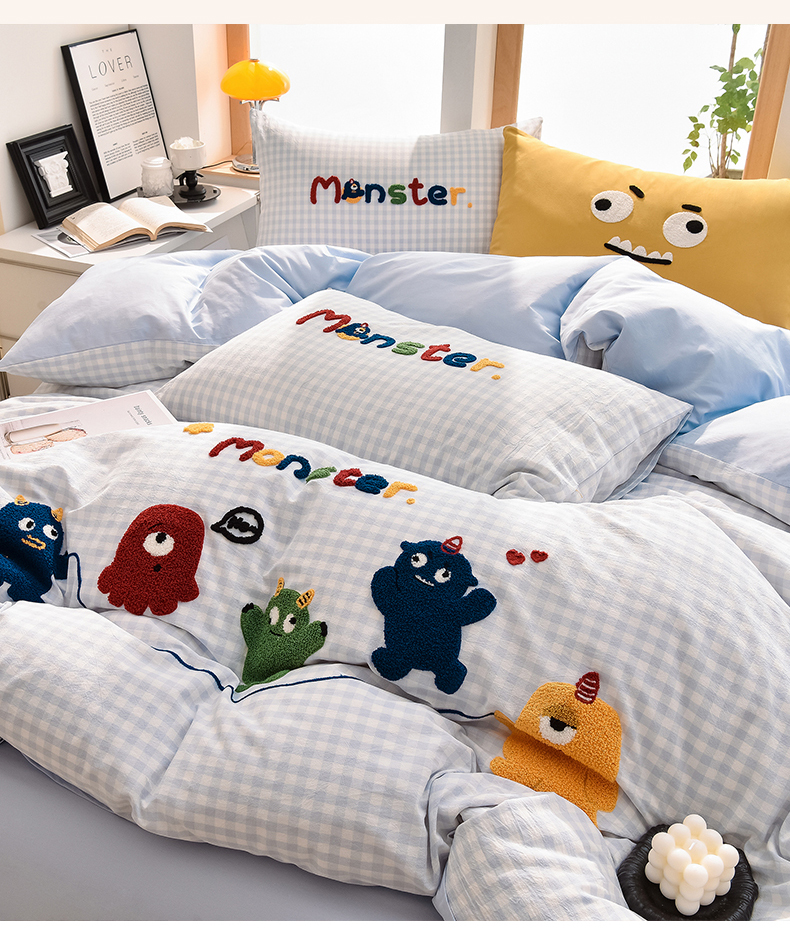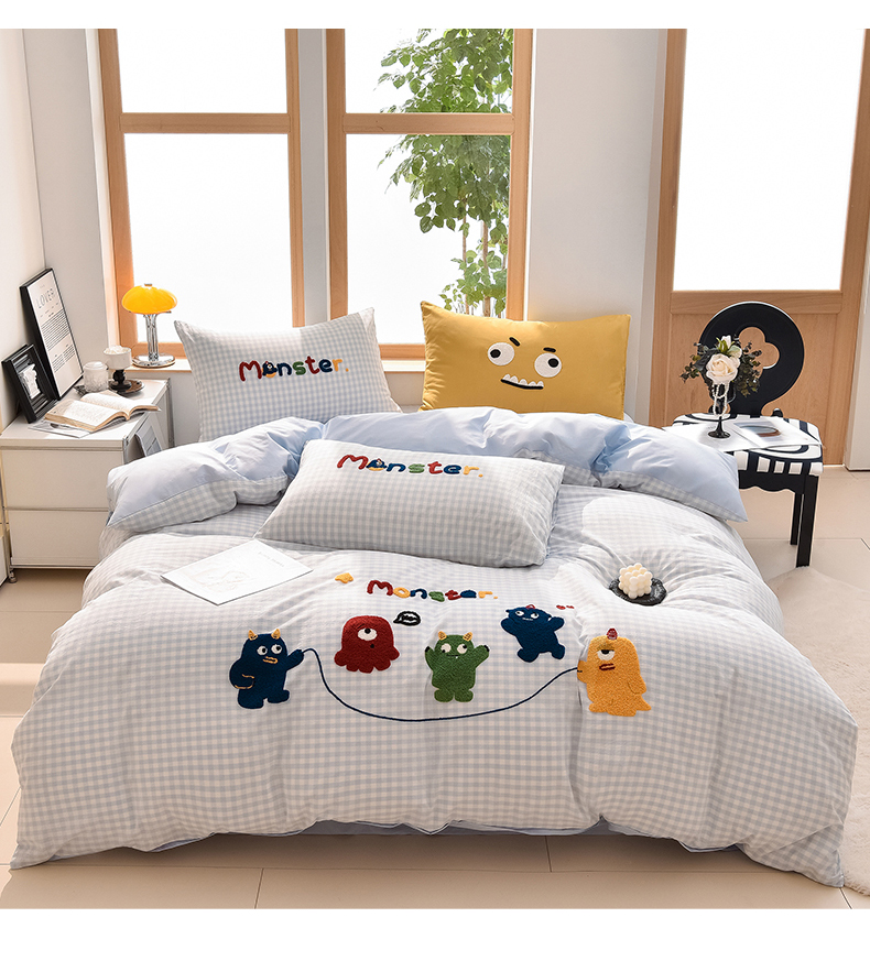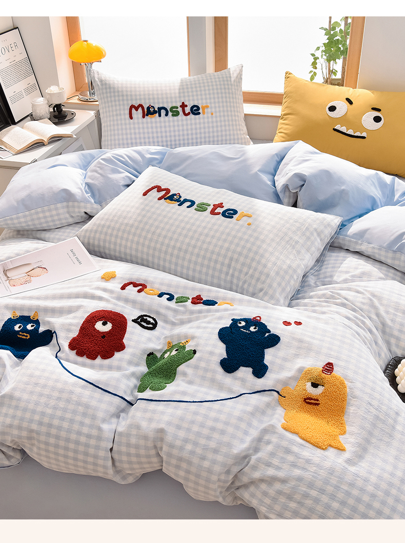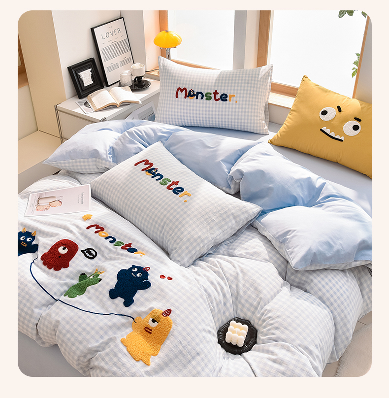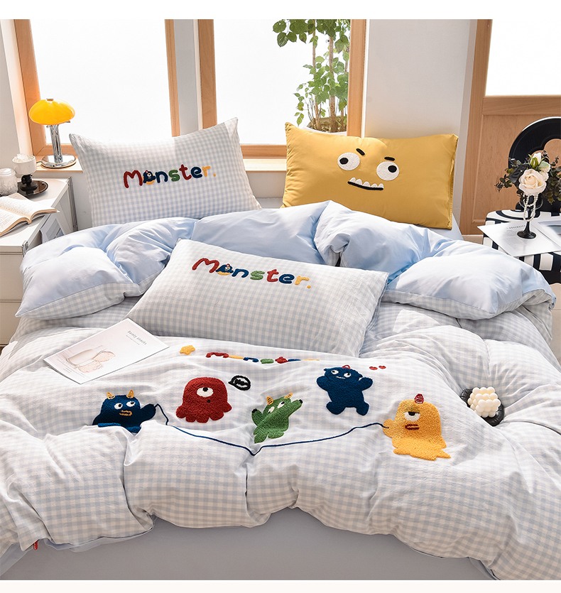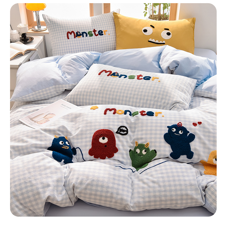 当前位置: 91家纺网 > 商品网购 > 床品套件 > 四件套 > 全棉普通四件套 > 炫拼家纺 2026新款多巴胺系列A类全棉40支水洗棉卡通毛巾绣四件套 多巴胺-一起嗨