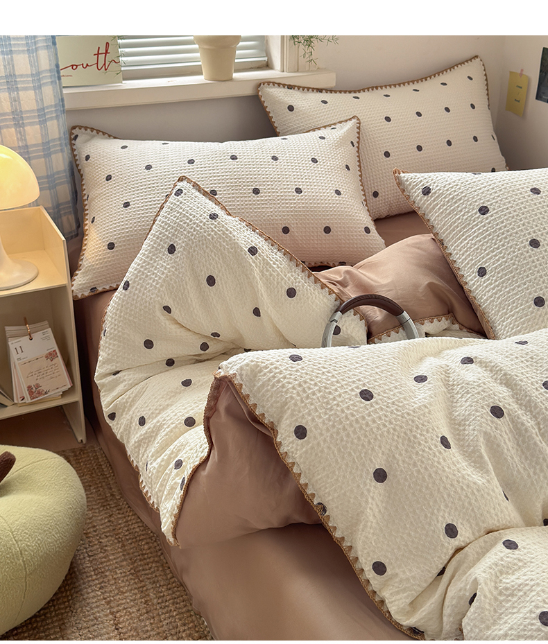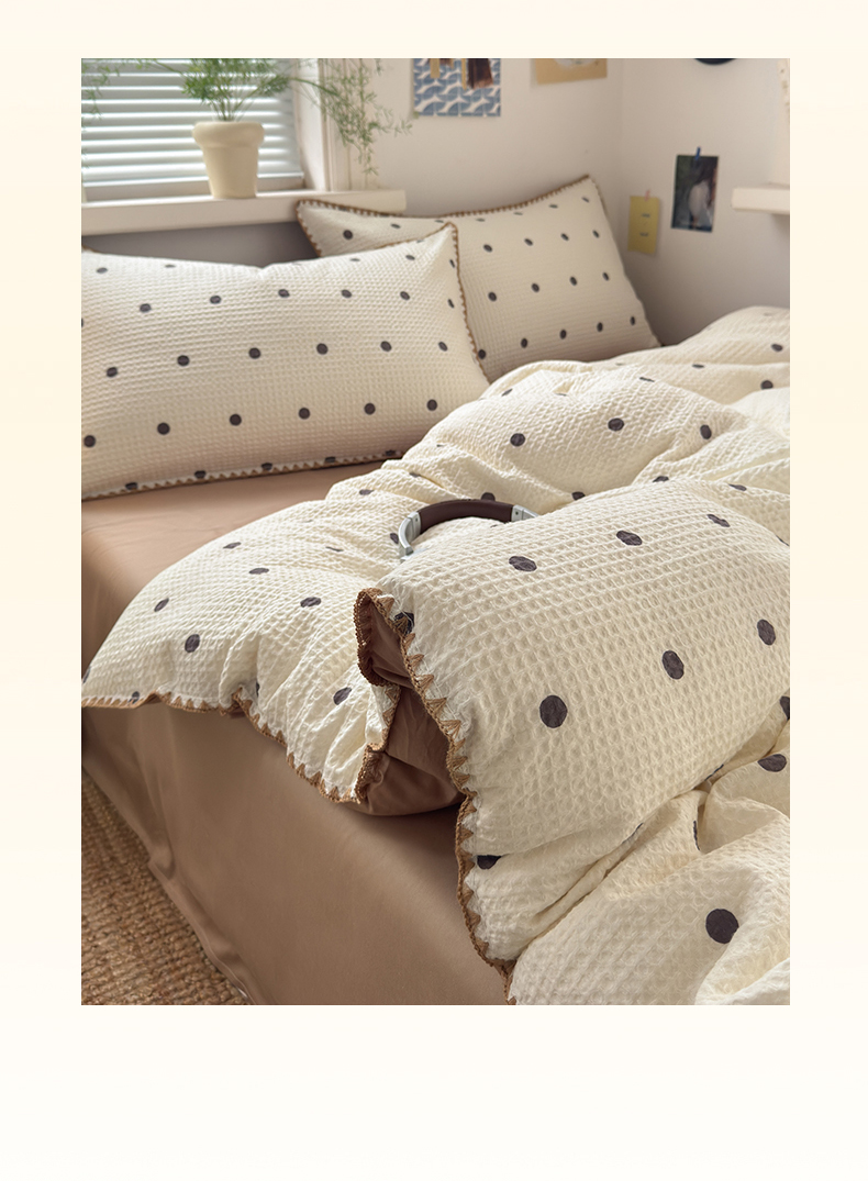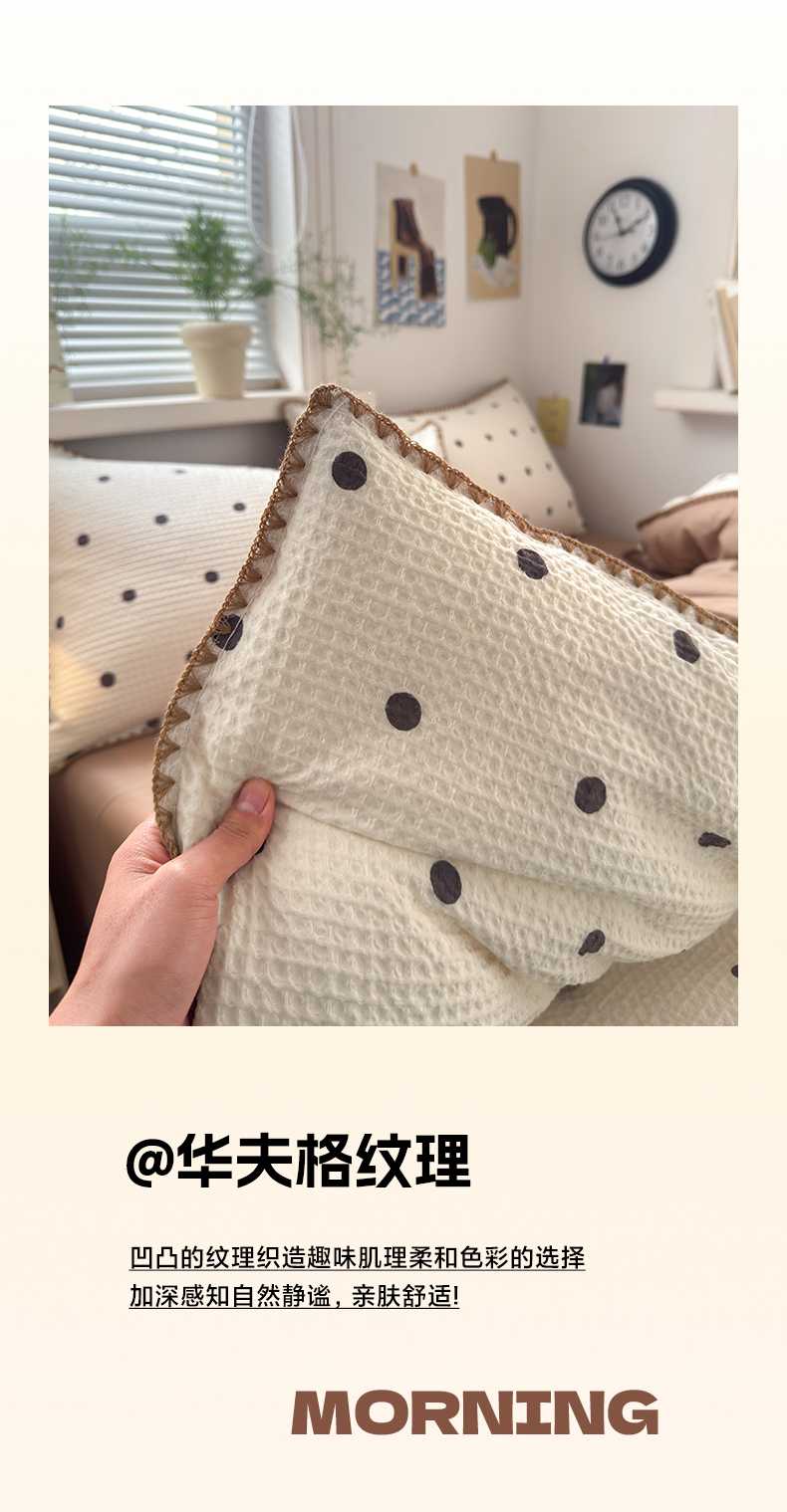 商品名称:典曼家纺 2026新款A类全棉华夫格提花贝壳边四件套 卡布-白