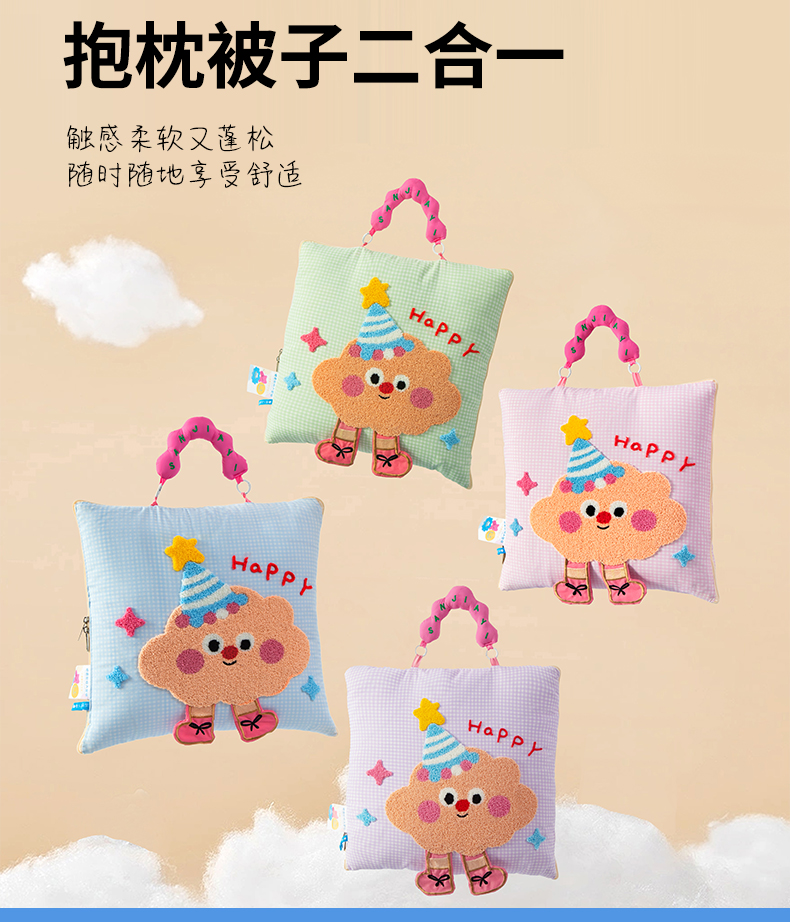 (总)雷娜家居 2026新款水洗木棉手提款云朵曲奇抱枕被