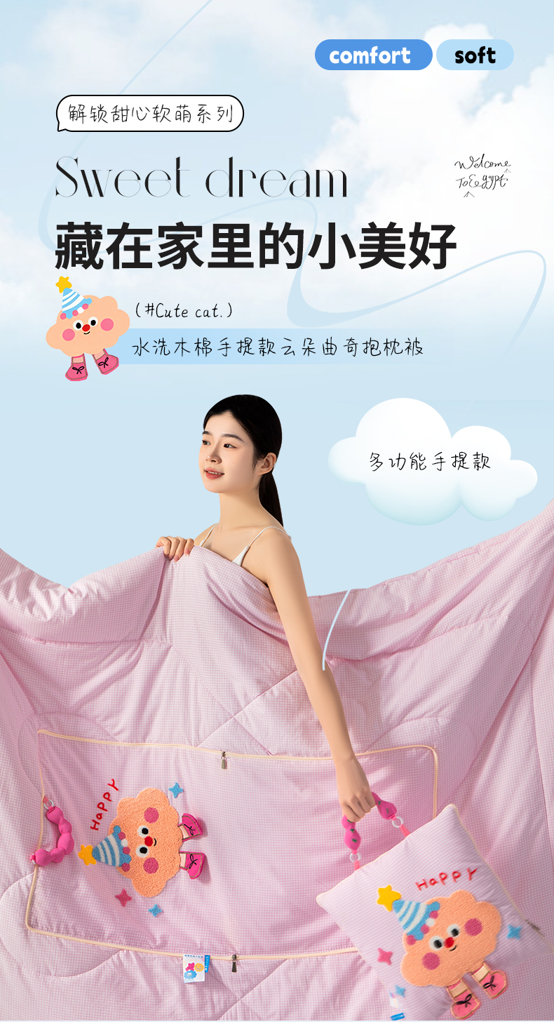 商品名称:(总)雷娜家居 2026新款水洗木棉手提款云朵曲奇抱枕被