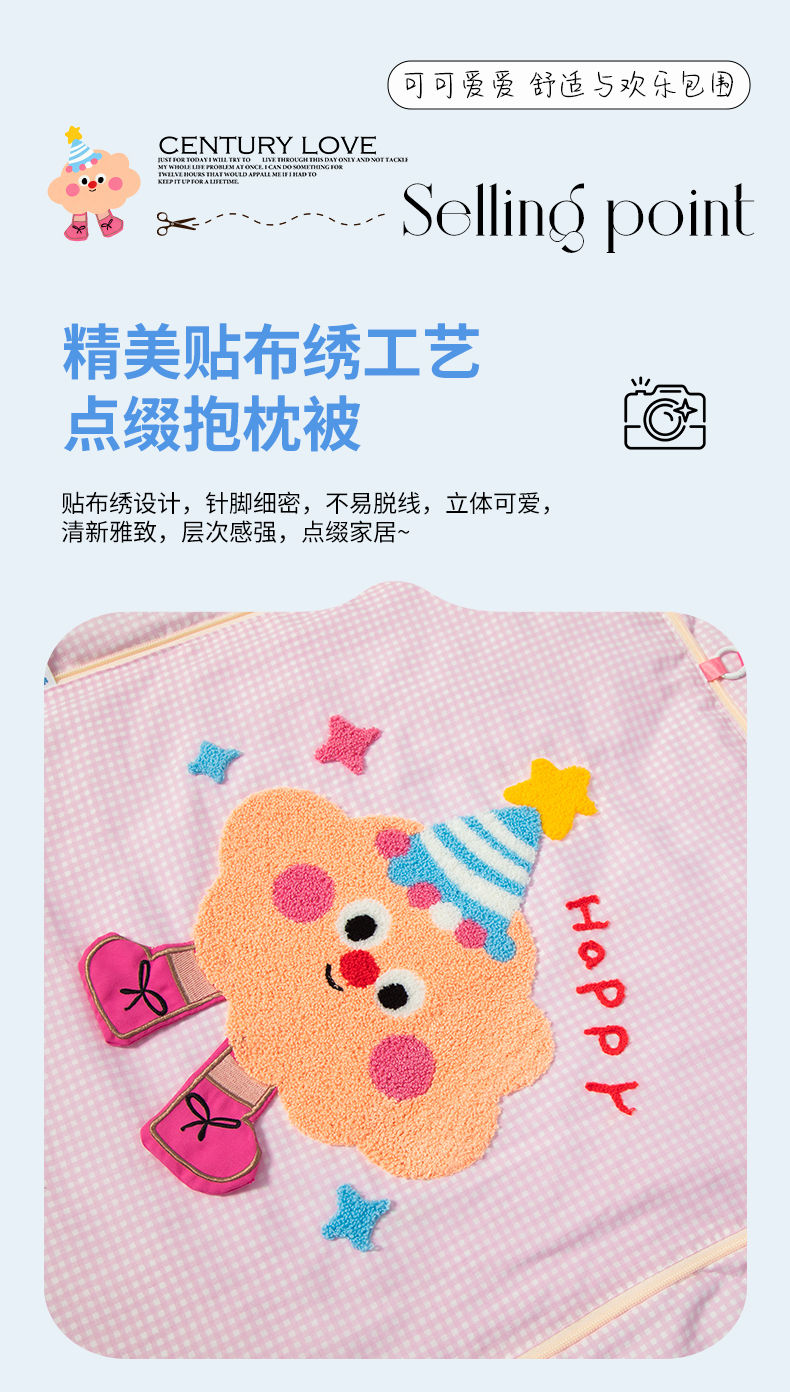 (总)雷娜家居 2025款加厚牛奶绒Happy Toast贴布绣抱枕被,藏青,橙橘,豆绿,海蓝,湖绿,暖玉色,深灰,温柔紫