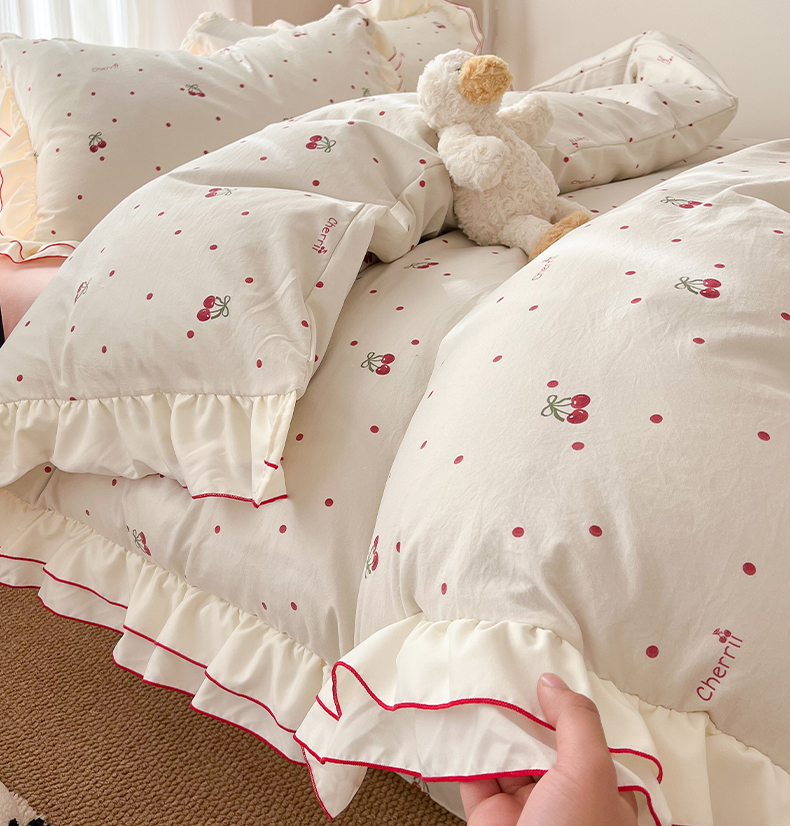 (总)吾欢心 2026春夏新款古法水洗仿棉韩版双层花边四件套,KT猫,斑马,彩色蝴蝶结,卡通小狗,可爱星星人,萌宠宝贝,秘境花园,奶萌小狗,田园趣味,汐颜,小草莓,樱桃派