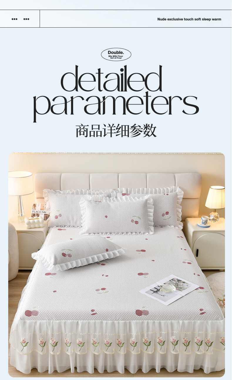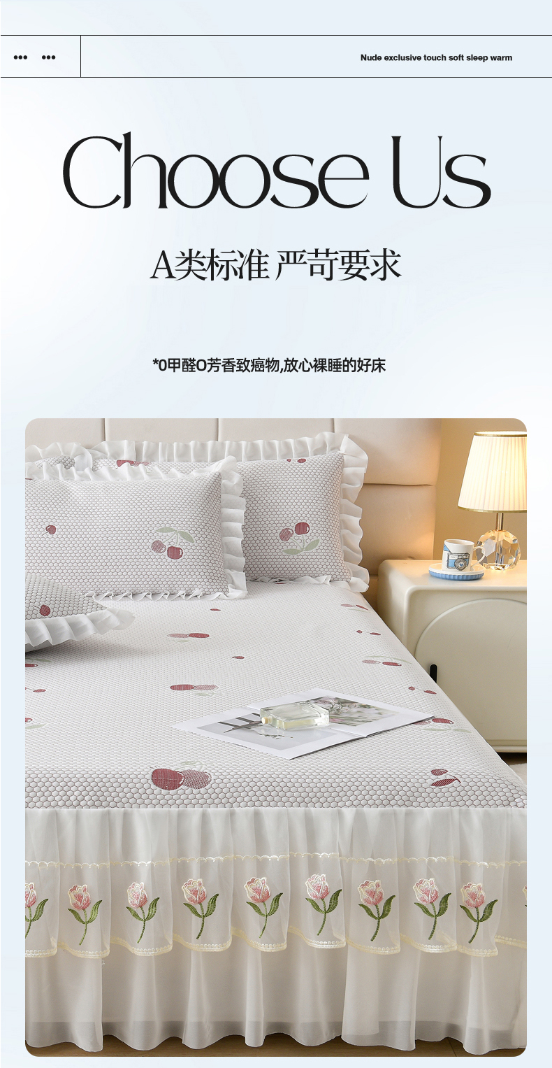 • 91家纺网 家纺一手货源 找家纺 优家居工厂店 A类2026夏季冰丝席裙款豆豆凉席三件套刺绣花边蕾丝花边床裙可机洗水洗 盛夏-樱桃 91家纺网 家纺一手货源 找家纺 优家居工厂店 A类2026夏季冰丝席裙款豆豆凉席三件套刺绣花边蕾丝花边床裙可机洗水洗 盛夏-樱桃