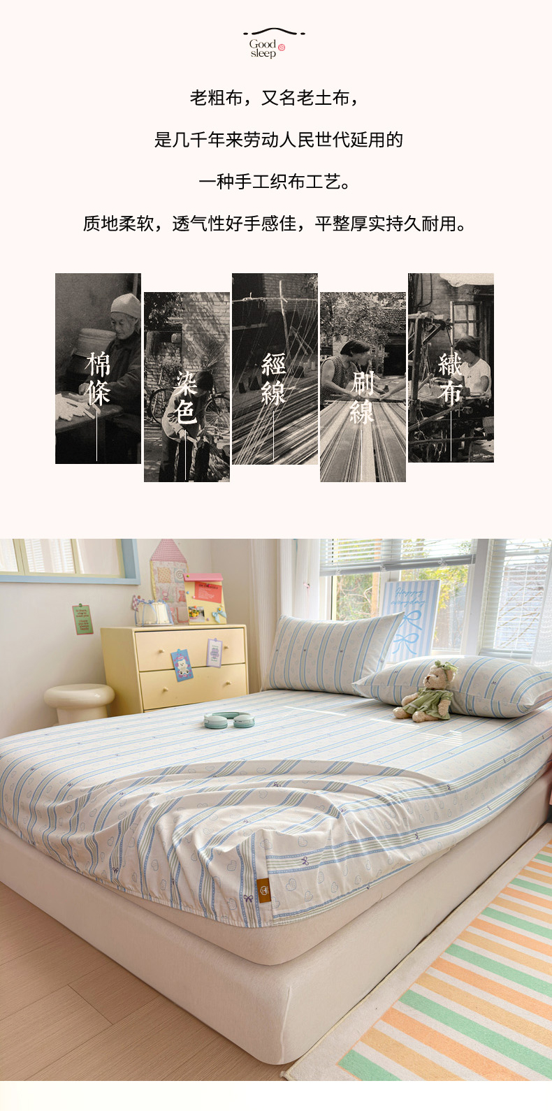 商品名称:女子家纺 2026新款全棉老粗布床笠 简恋