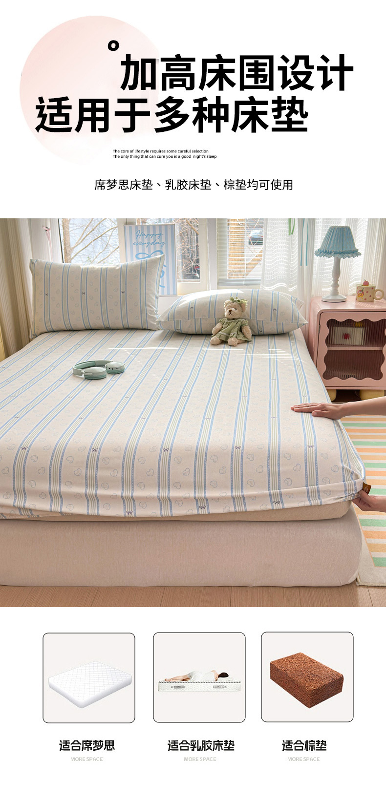 (总)女子家纺 2026春夏新款简爱A类夹棉防水床笠三件套水洗棉7A抗菌磨毛床单保护套,简爱-月光白,简爱-黛蓝,简爱-淡水蓝,简爱-密合粉,简爱-暮云灰,简爱-奶咖,简爱-清雅绿,简爱-深空灰