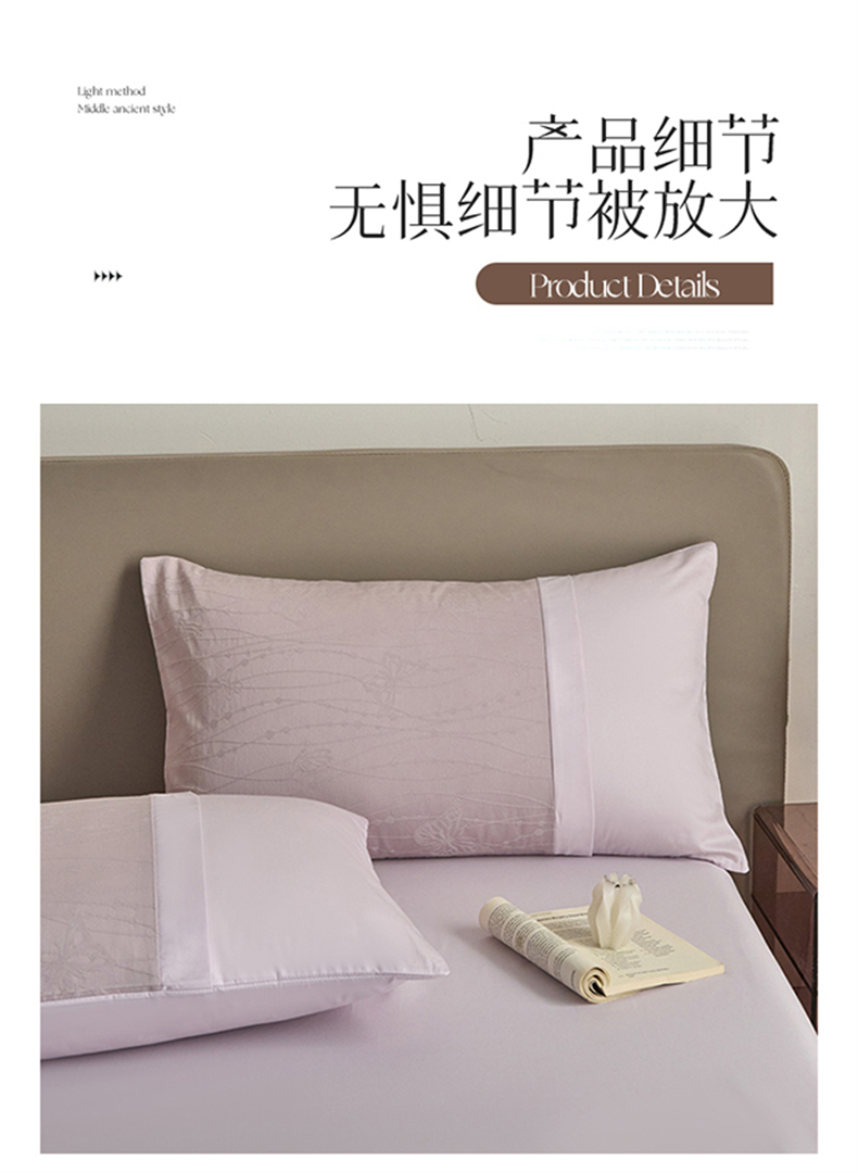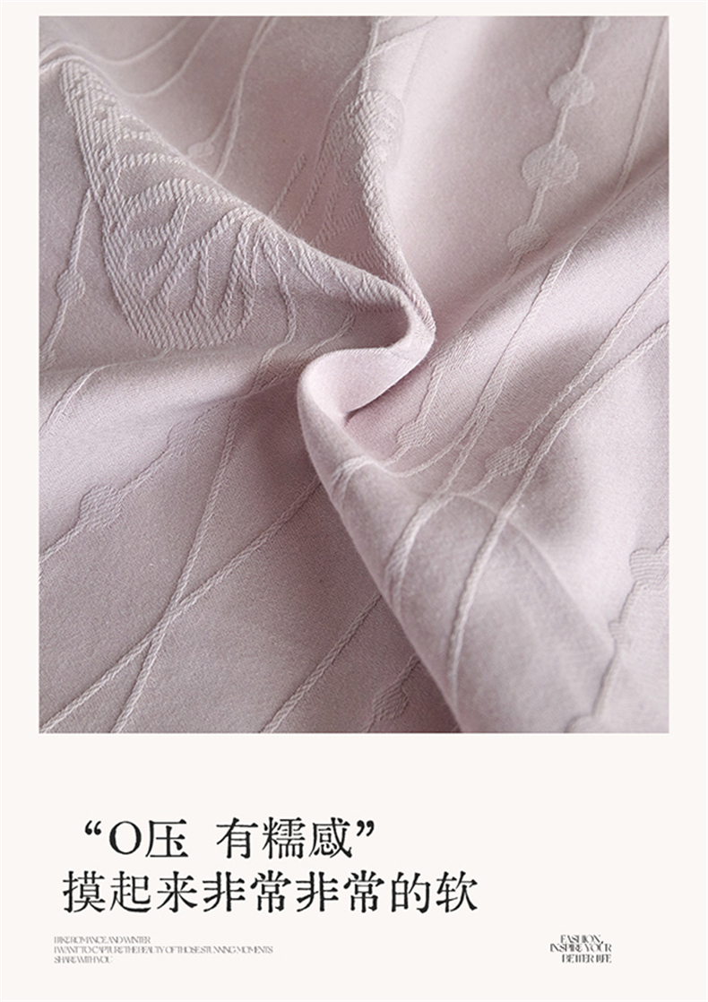 商品名称:蓝米卡夫 2026春季新款-100S全棉亮面提花贡缎长绒棉拼接款(礼盒) 蝶梦-淡雅紫