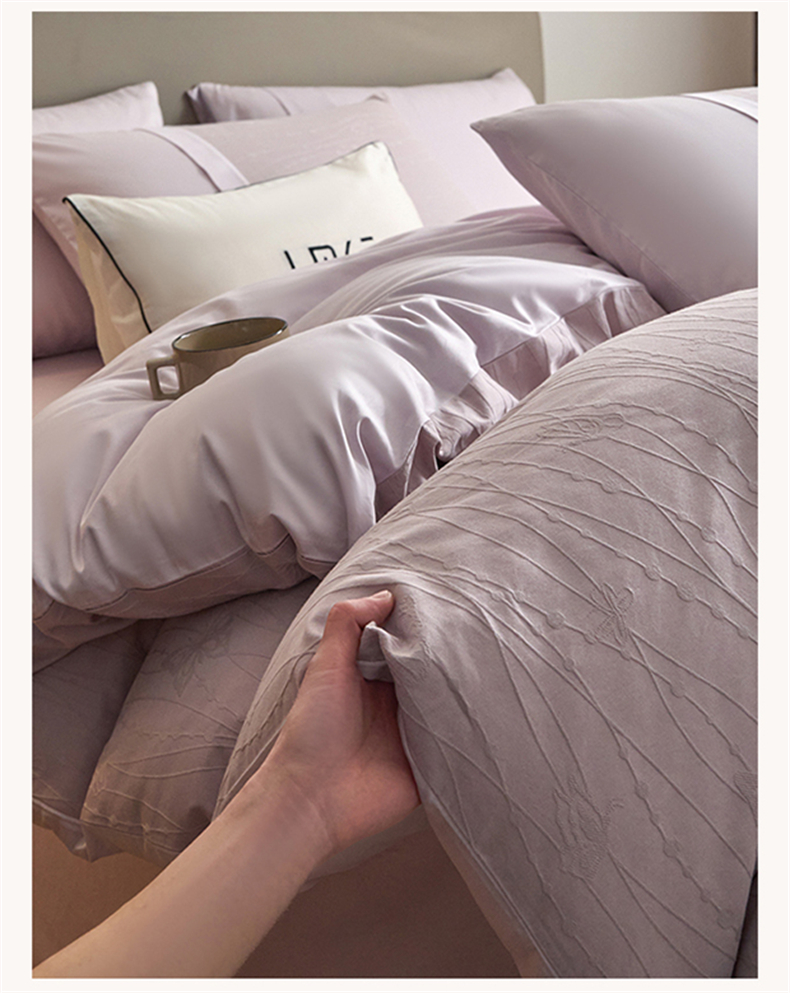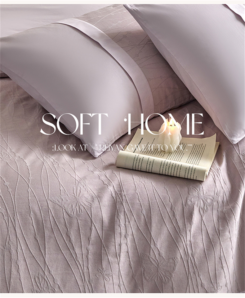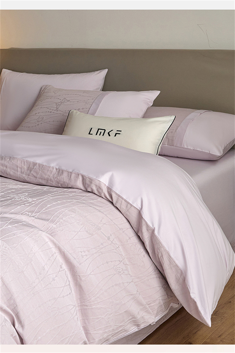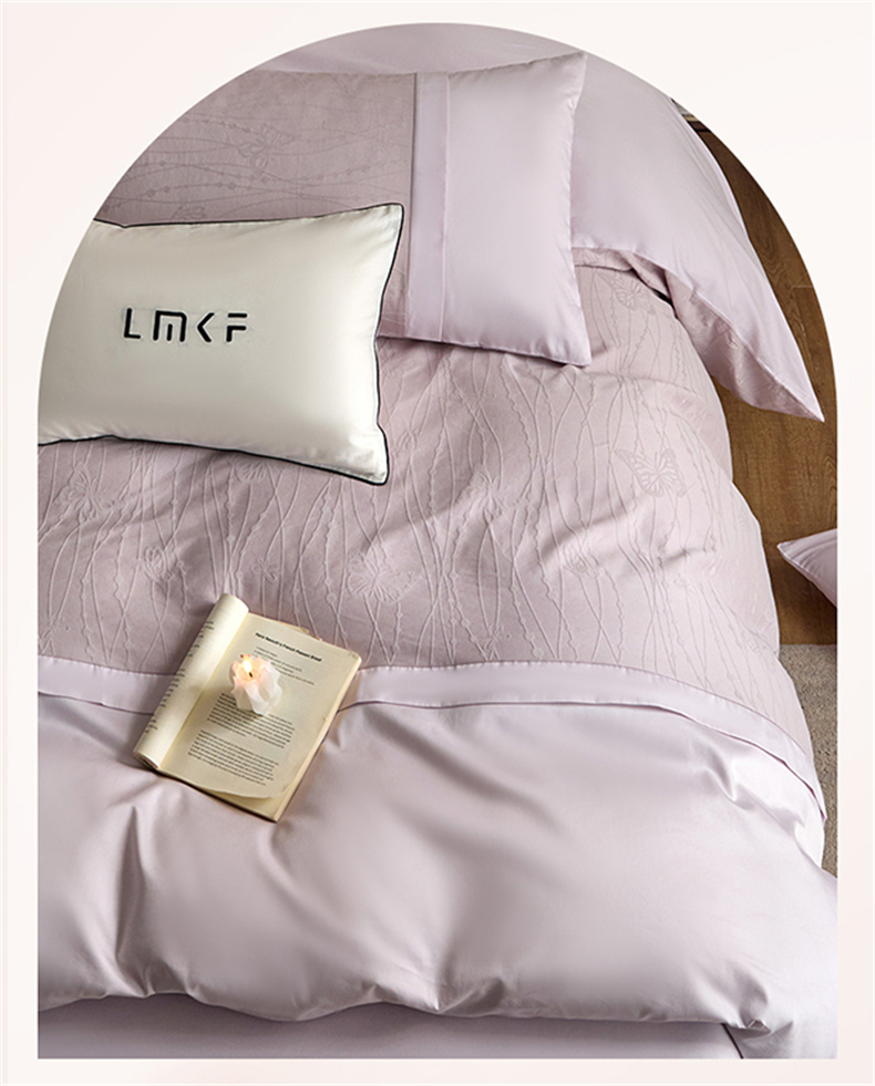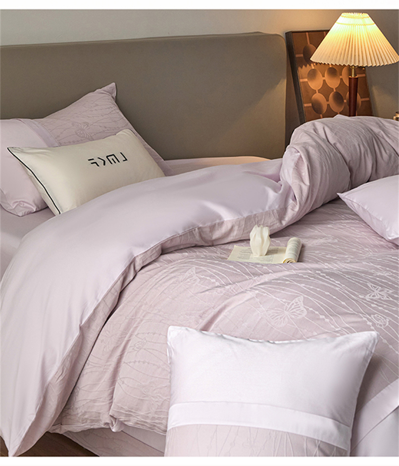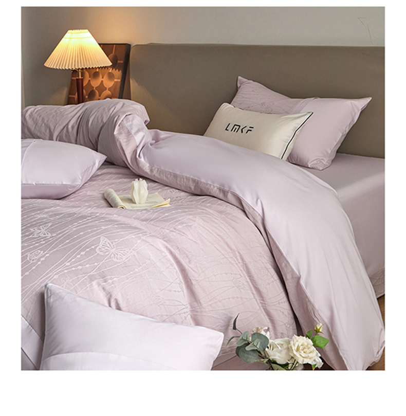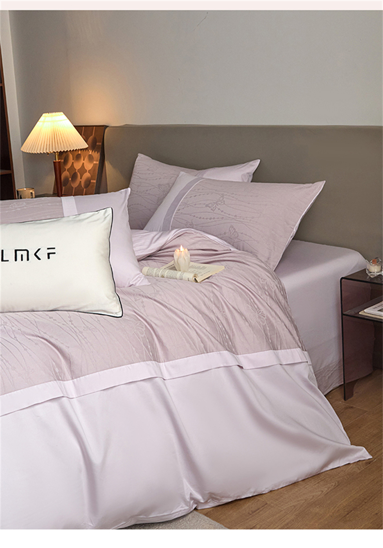 蓝米卡夫 2026春季新款-100S全棉亮面提花贡缎长绒棉拼接款(礼盒) 蝶梦-淡雅紫