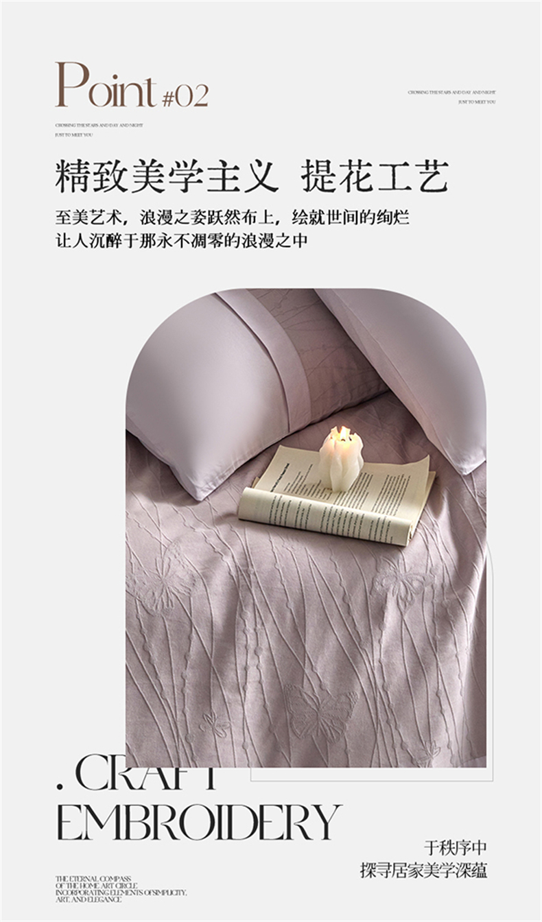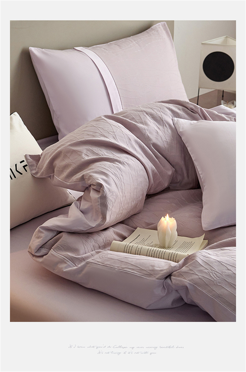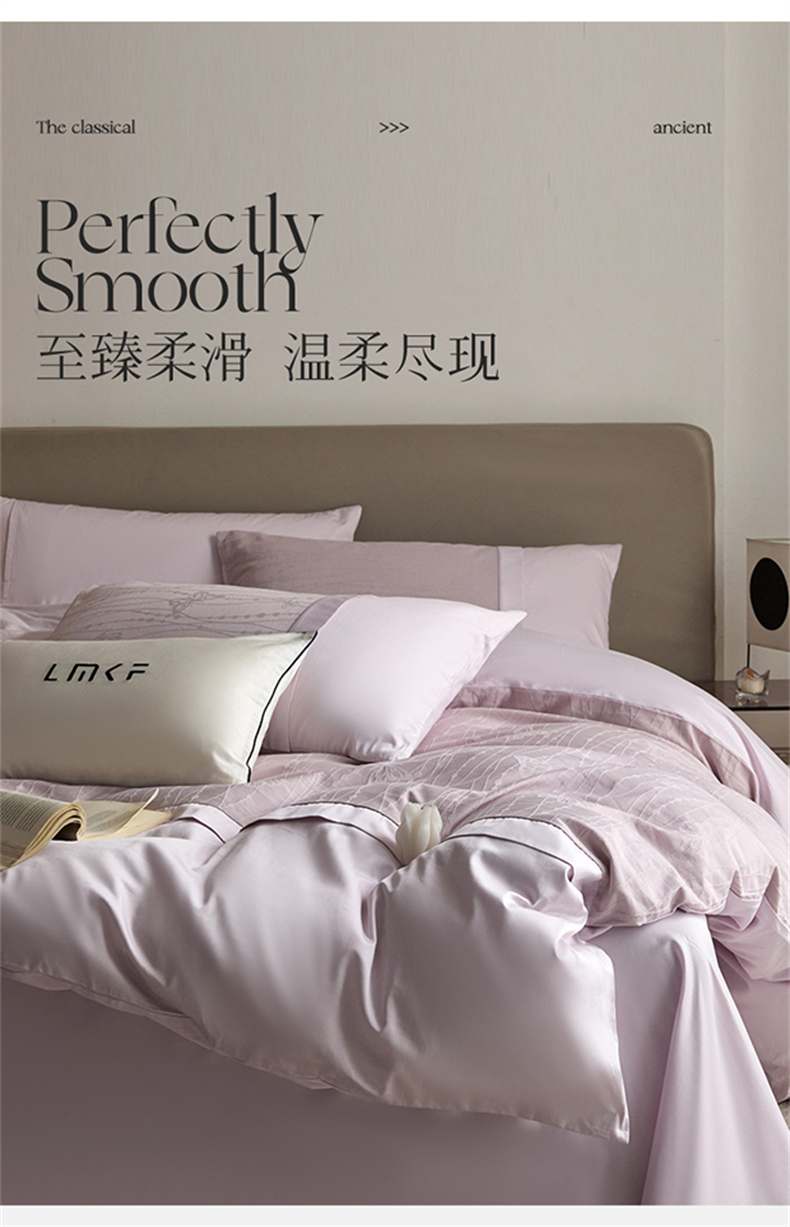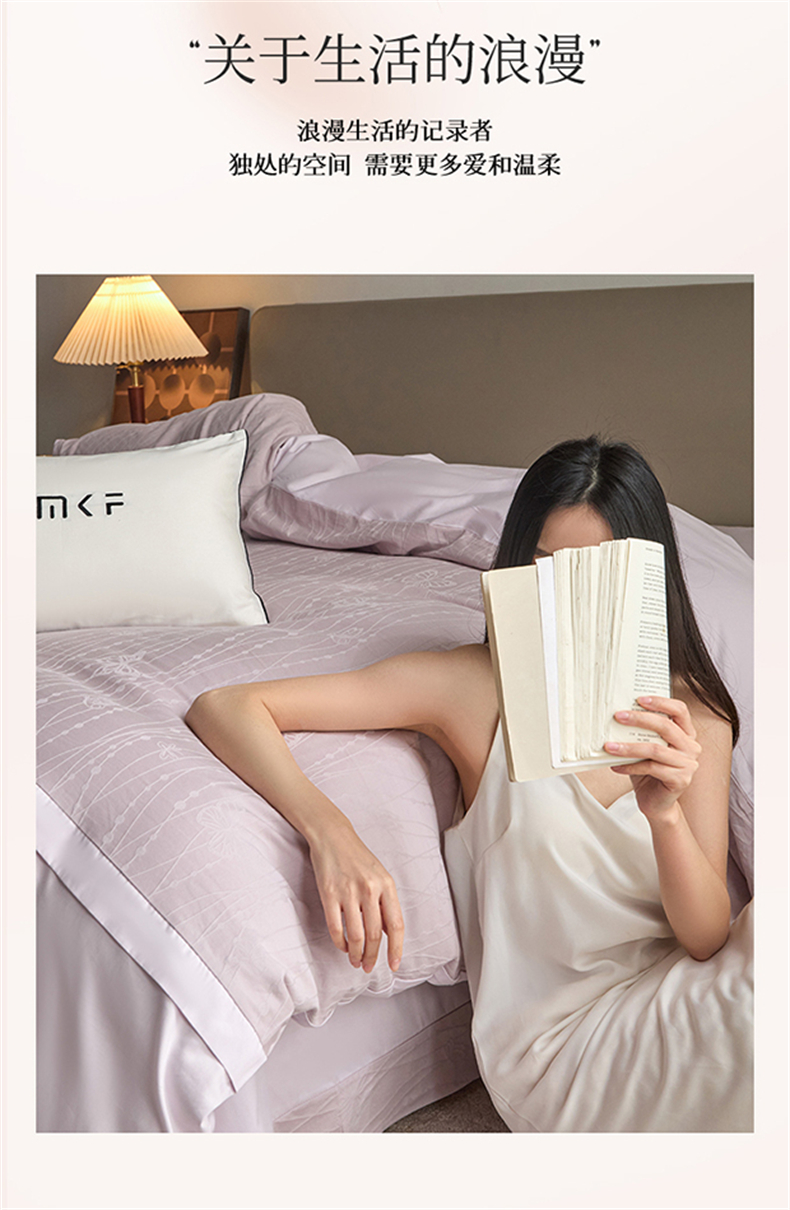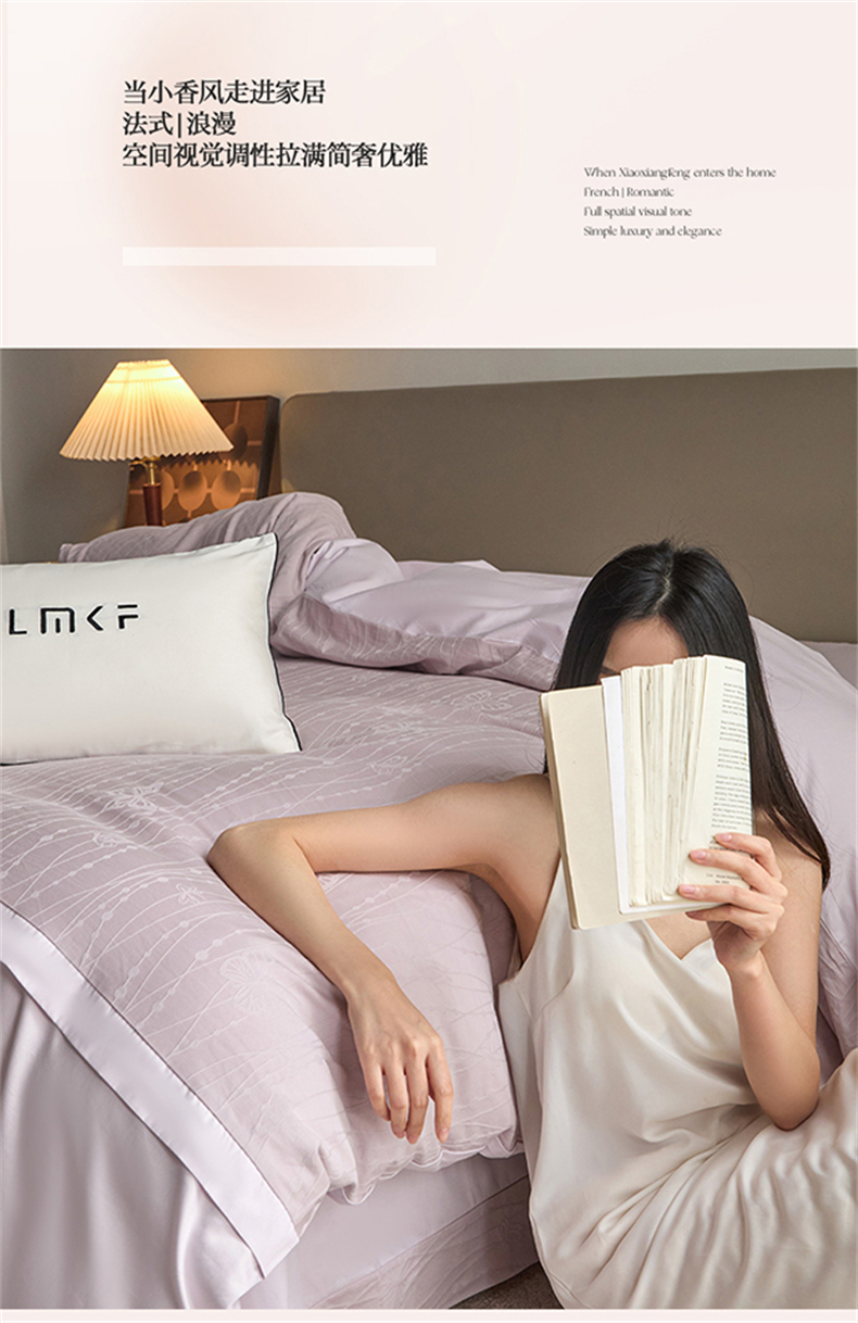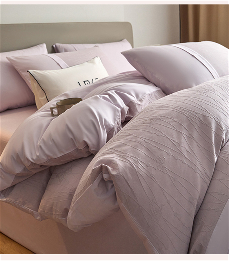 蓝米卡夫 2026春季新款-100S全棉亮面提花贡缎长绒棉拼接款(礼盒) 蝶梦-淡雅紫