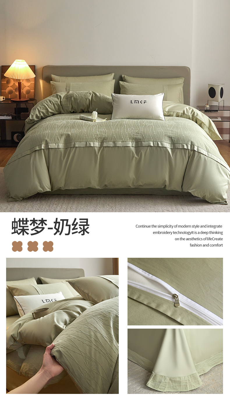 (总)蓝米卡夫 2026春季新款-60S长绒棉贡缎蝴蝶刺绣花边系列四件套-福蝶吉祥(礼盒)-拍摄风格1,福蝶吉祥-优雅粉,福蝶吉祥-大地色,福蝶吉祥-海洋蓝