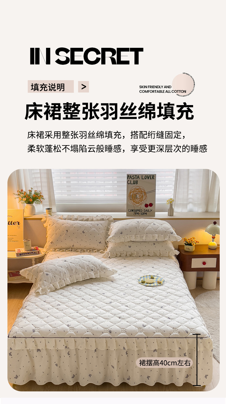 当前位置: 91家纺网 > 商品网购 > 床品套件 > 四件套 > 化纤普通四件套 > 优家居 2026新款精仿棉夹棉床裙四件套水洗棉韩版公主风花边床裙被套直播外贸定制 蝶舞翩翩