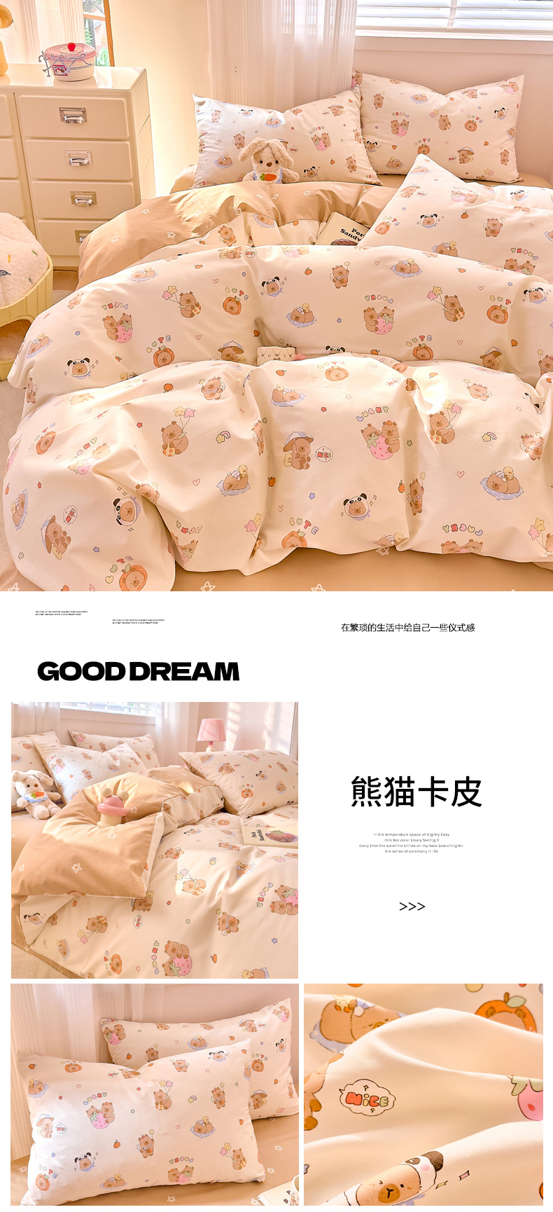 当前位置: 91家纺网 > 商品网购 > 床品套件 > 四件套 > 全棉普通四件套 > DoDo 兜兜 2026春夏新款全棉纯棉可爱卡通四件套 圆滚滚的梦