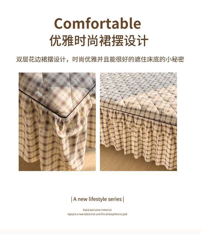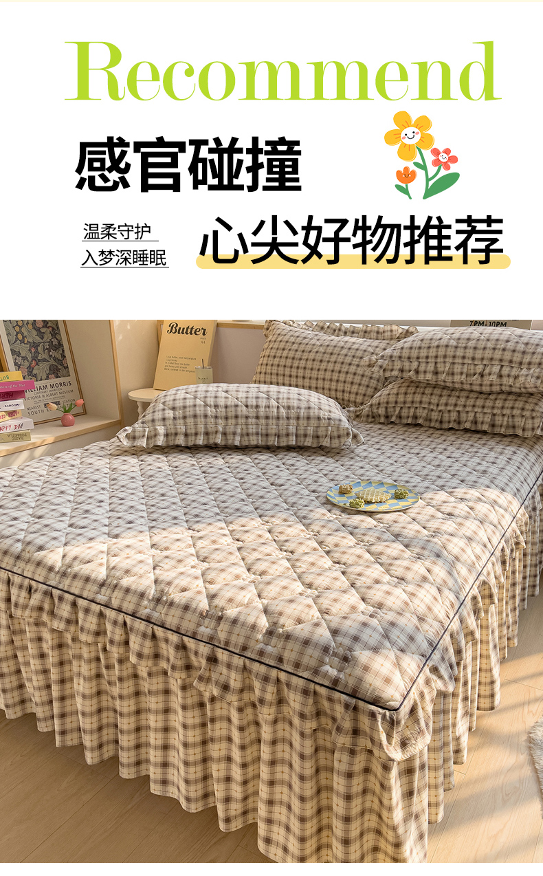• 91家纺网 家纺一手货源 找家纺 优家居 2026新款精仿棉夹棉床裙三件套水洗棉韩版公主风花边床裙直播外贸定制 星尚