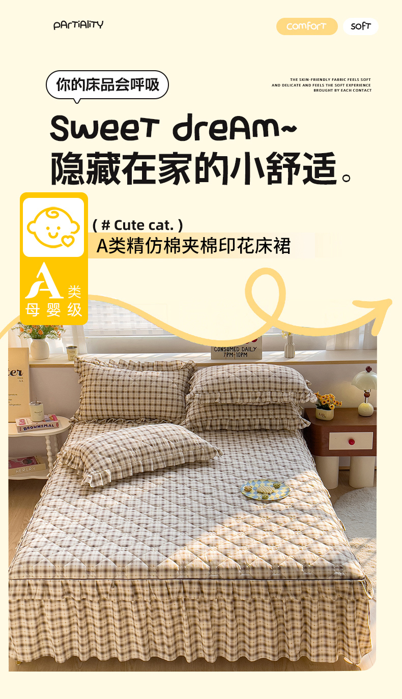 当前位置: 91家纺网 > 商品网购 > 床上用品 > 床裙 > 优家居 2026新款精仿棉夹棉床裙三件套水洗棉韩版公主风花边床裙直播外贸定制 星尚