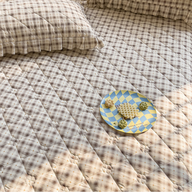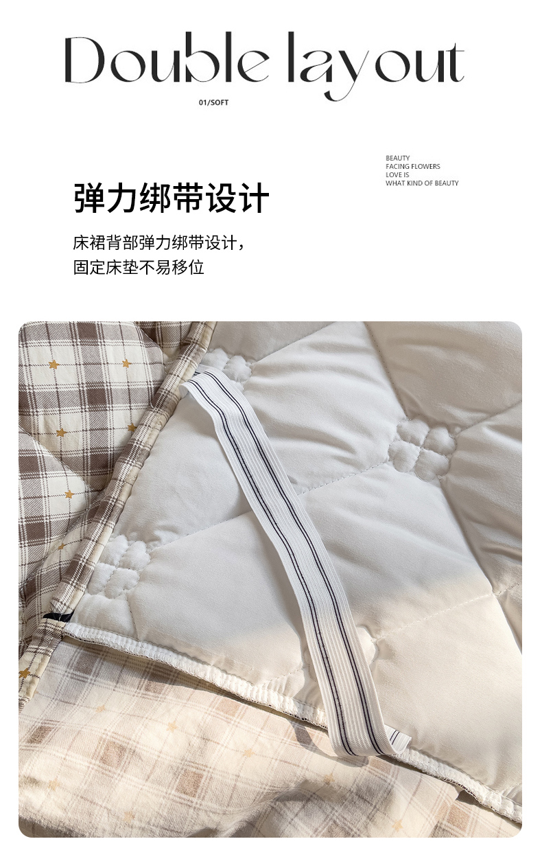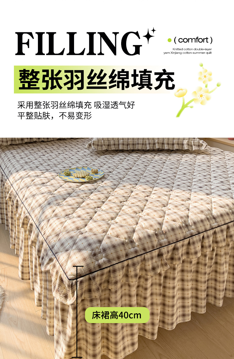 优家居 2026新款精仿棉夹棉床裙三件套水洗棉韩版公主风花边床裙直播外贸定制 星尚