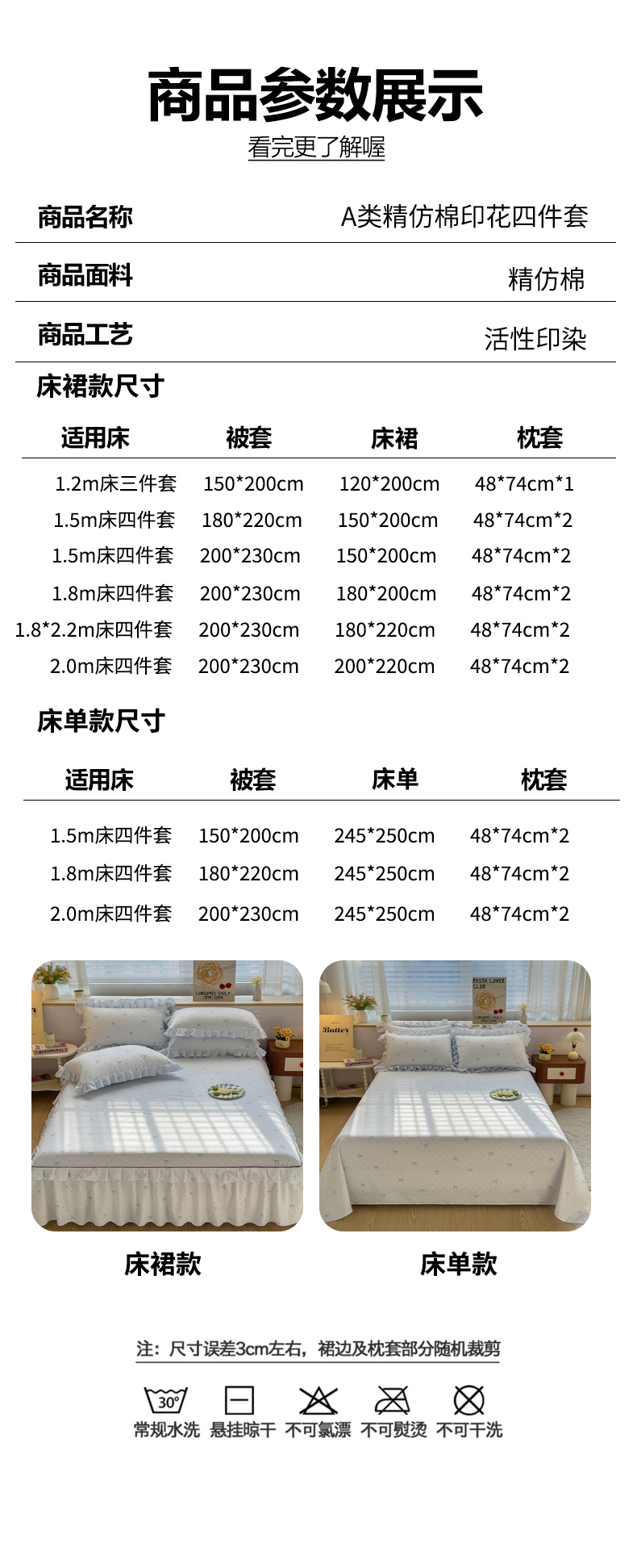 【床裙款】1.2x2.0三件套-被套150x200 | ¥52.00 |