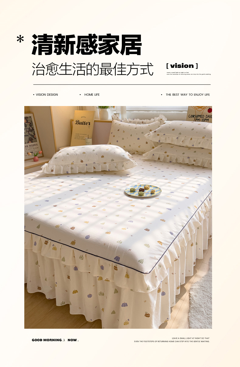 优家居工厂店 2026新款精仿棉床裙三件套水洗棉韩版公主风花边床裙直播外贸定制 贝贝南瓜