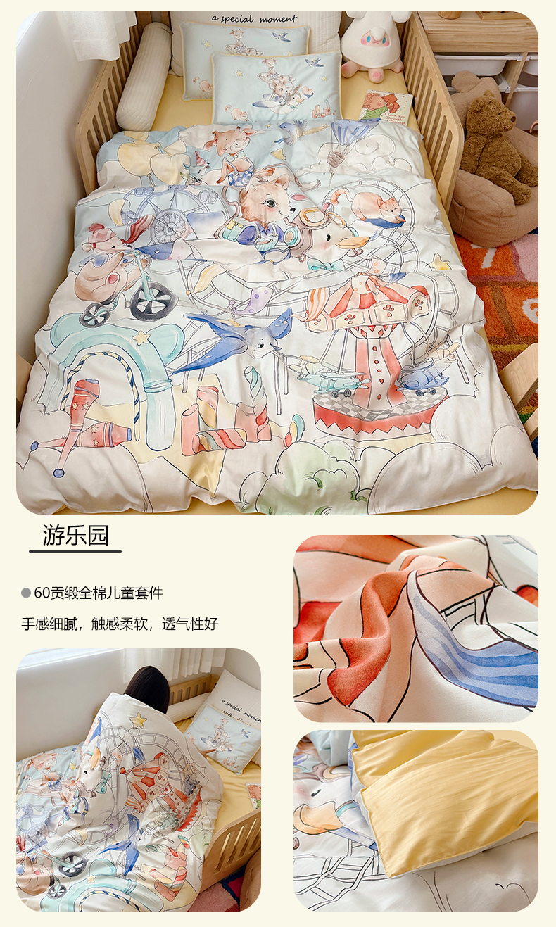 当前位置: 91家纺网 > 商品网购 > 床品套件 > 三件套 > 萌宝家纺 2026新款春夏儿童全棉60贡缎被套幼儿园三件套含芯6件套 天鹅湖