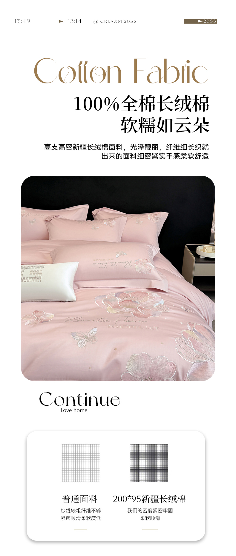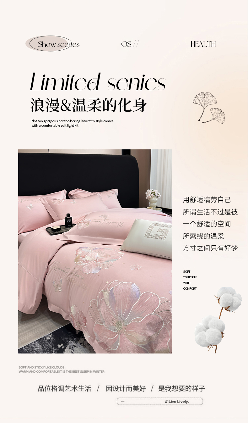 商品名称:家居1号家纺 2026新款50双股挚爱新疆长绒棉四件套 挚爱-桃花粉