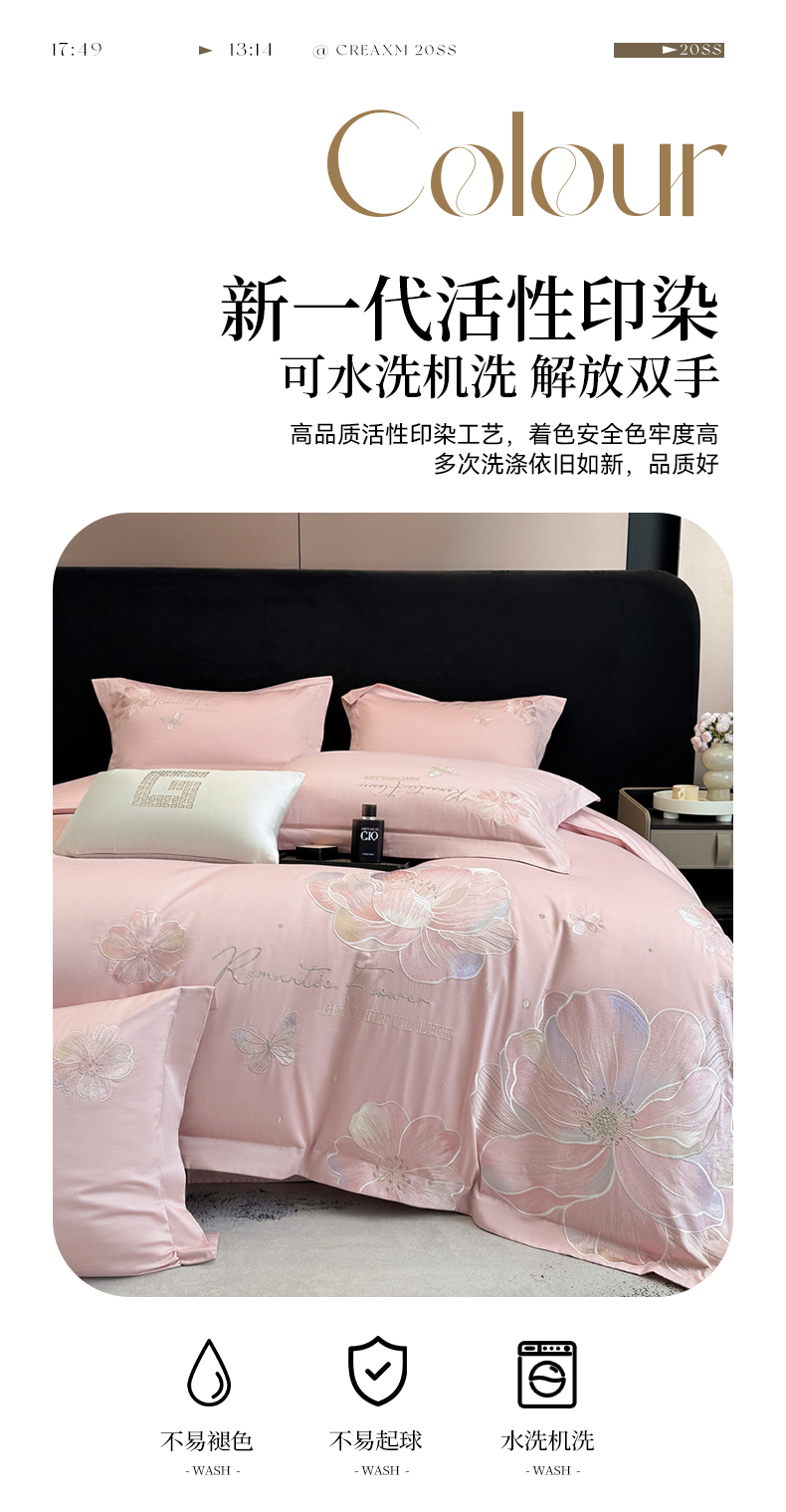 (总)家居1号家纺 2025新款花韵长绒棉四件套,花韵-白拼粉,花韵-冰海蓝,花韵-淡雅灰,花韵-玫瑰粉,花韵-温馨蓝