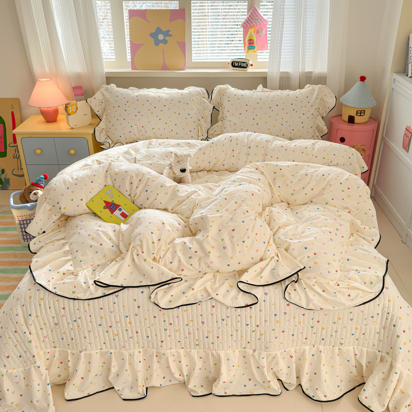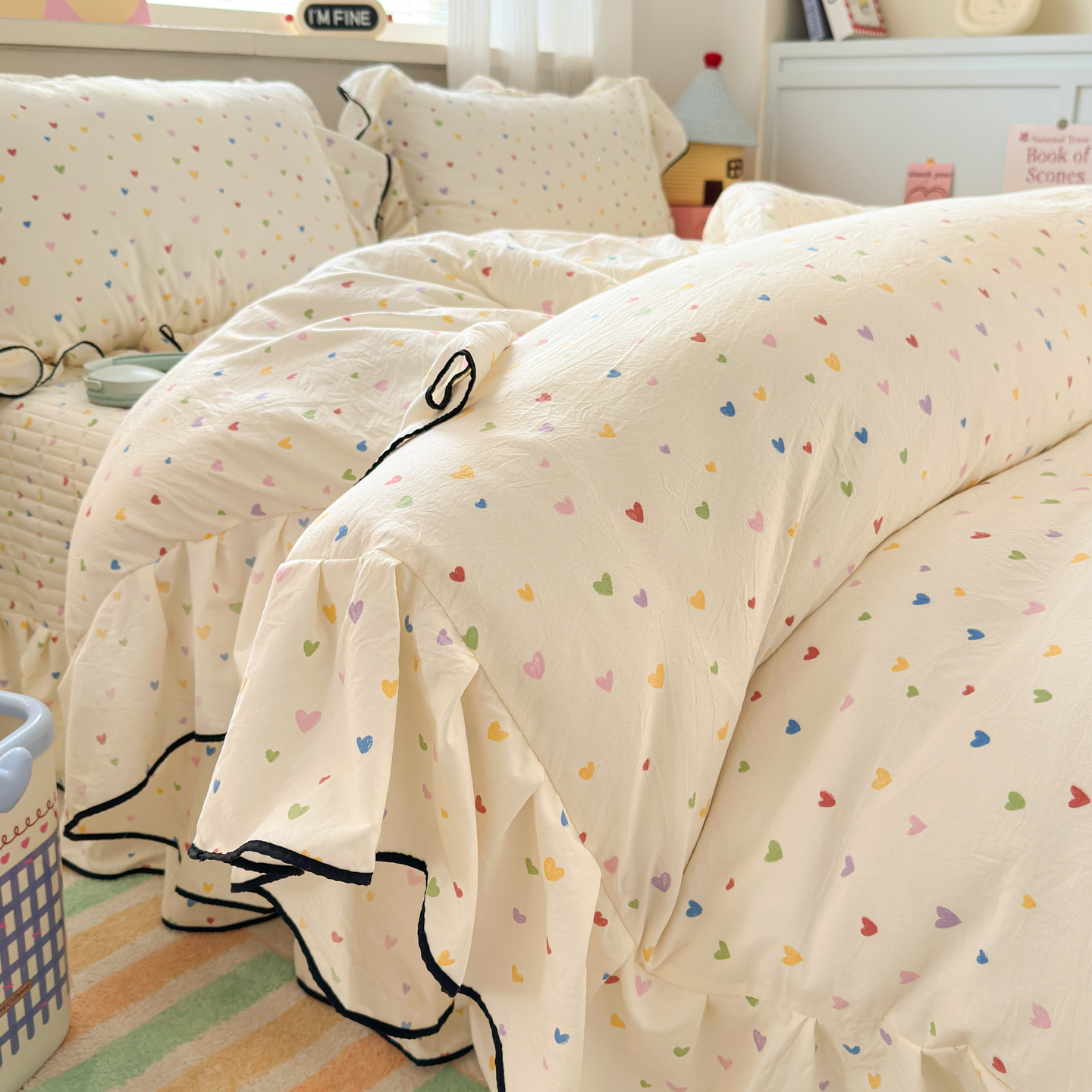 商品名称:德比尔斯 2026新款A类仿棉四件套古法水洗棉法式工艺花边床盖仿棉四件套 七彩爱心