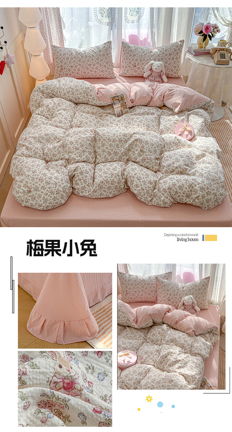 (总)铺尚美家纺 2026新款A类古法水洗仿棉云感纱四件套,萌兔小熊,安娜,波点熊,布丁狗,草莓啵啵,草莓熊-粉,草莓熊-蓝,丁香紫,格纹萌友团,格子熊,狗狗乐园,乖乖狗-灰,乖乖狗-玉,花园小猫,猫狗狂欢夜,玫瑰庄园,莫兰迪,奶绿牛油果,蔷薇花语,条纹小熊,小马星河,小奶团,星芒啵啵熊,雪花世界,英伦小木马,紫罗兰