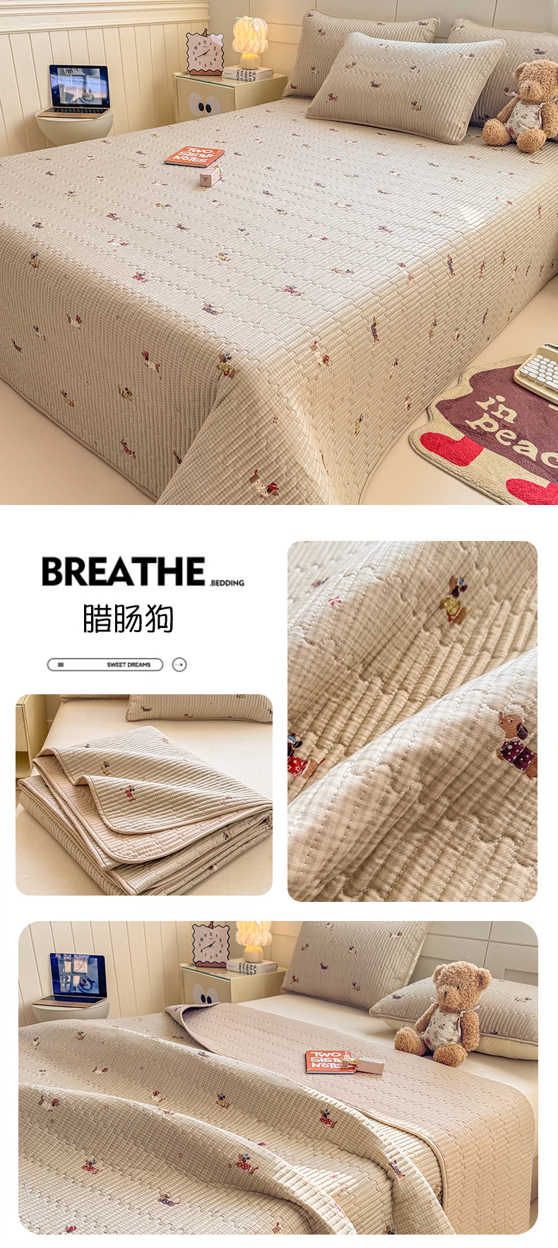 (总)康纳利 2026新款全棉床盖学生夹棉薄款床盖床垫三件套四季通用,波点兔,彩色波点,春天里,费尔岛,格调,蝴蝶结粉,蝴蝶结蓝,欢乐伙伴,腊肠狗,莱茵春色,萌小福,萌小星,相约,小新一家,熊仔,月见,KT粉