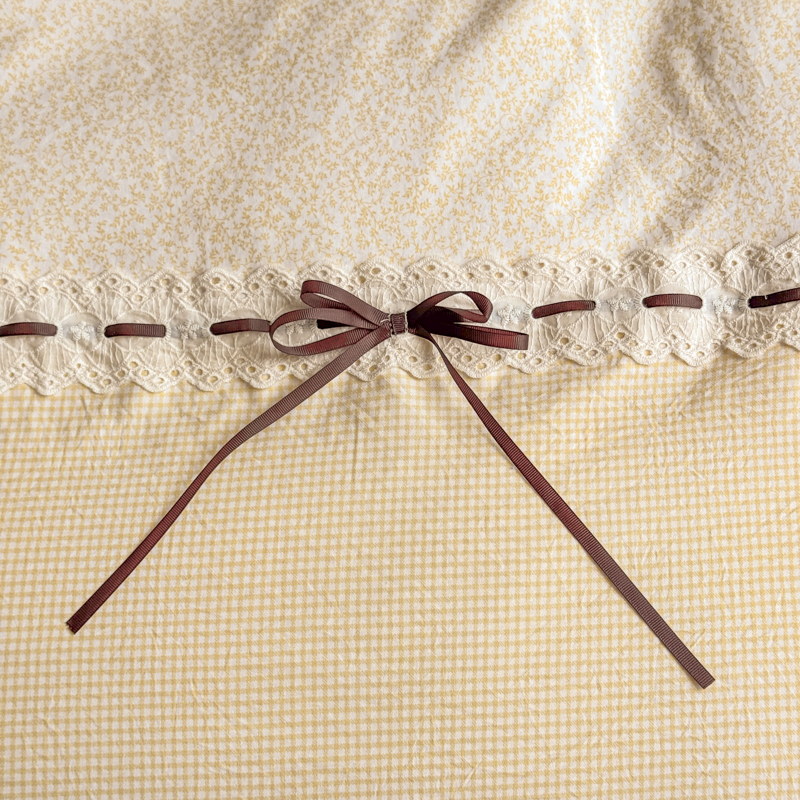 商品名称:赛丽雅 2026年新款直播爆款双层花边拼接蝴蝶结工艺款四件套床上用品 南法假日-姜黄