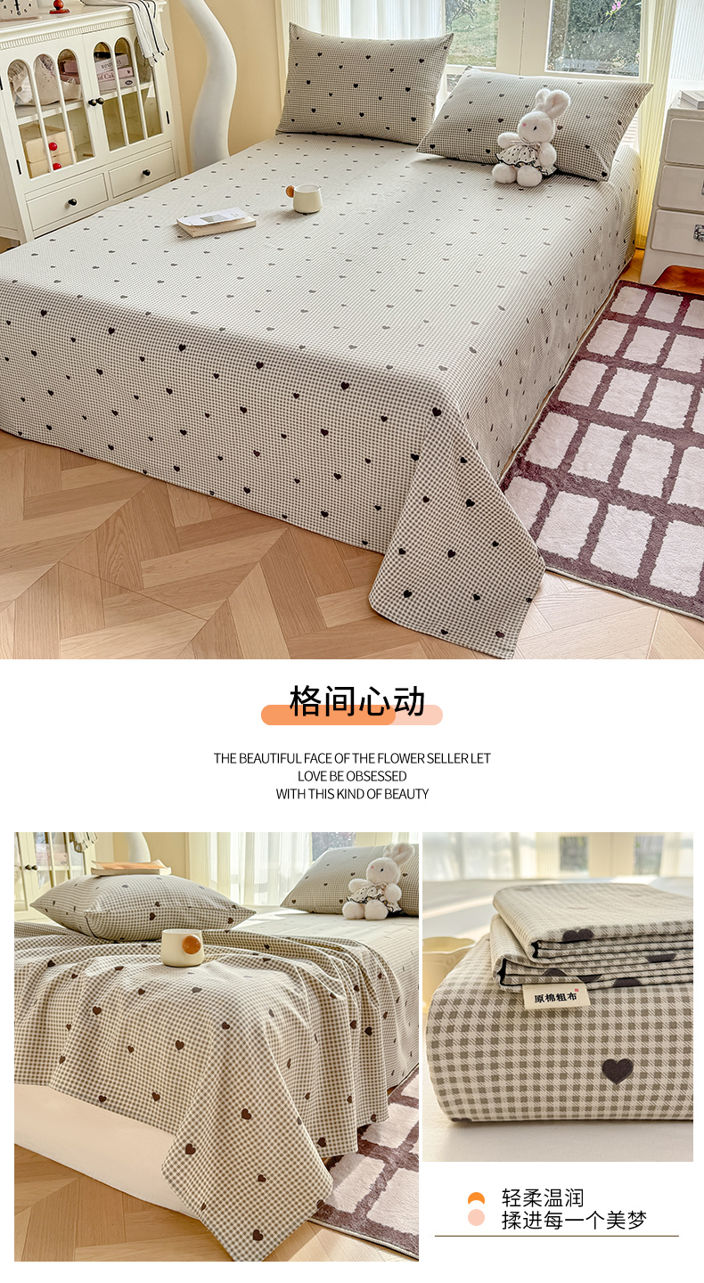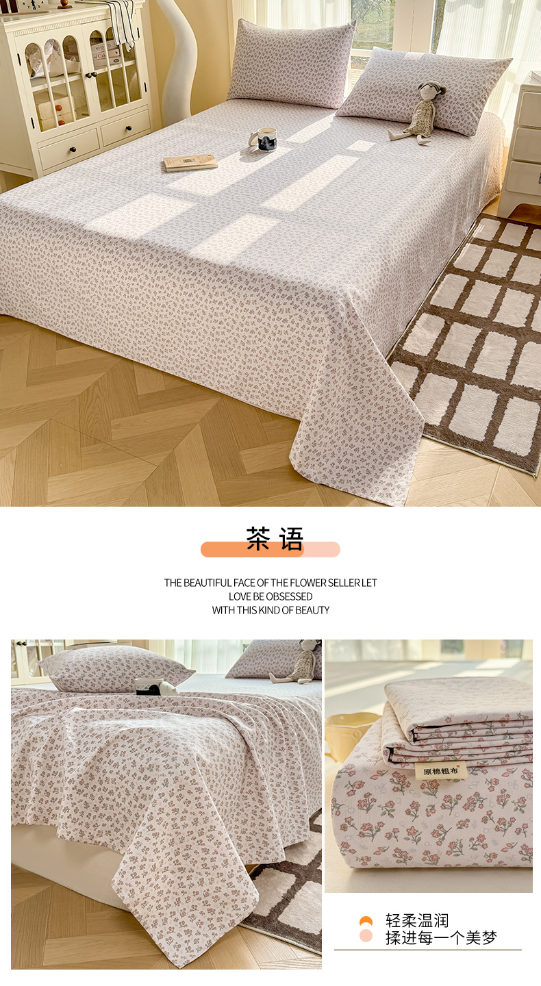 康纳利 2026新款原棉老粗布透气印花床单 茶语
