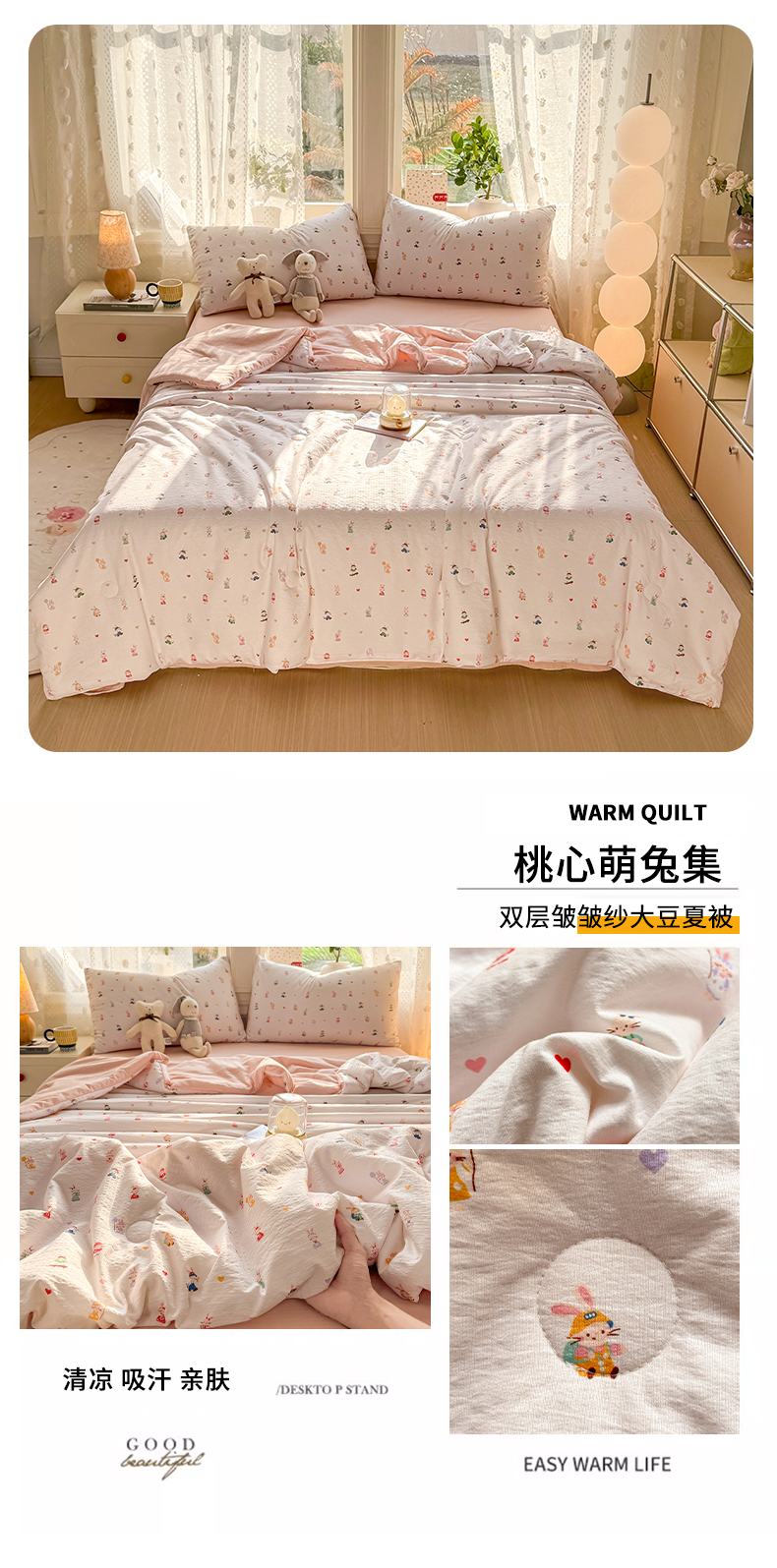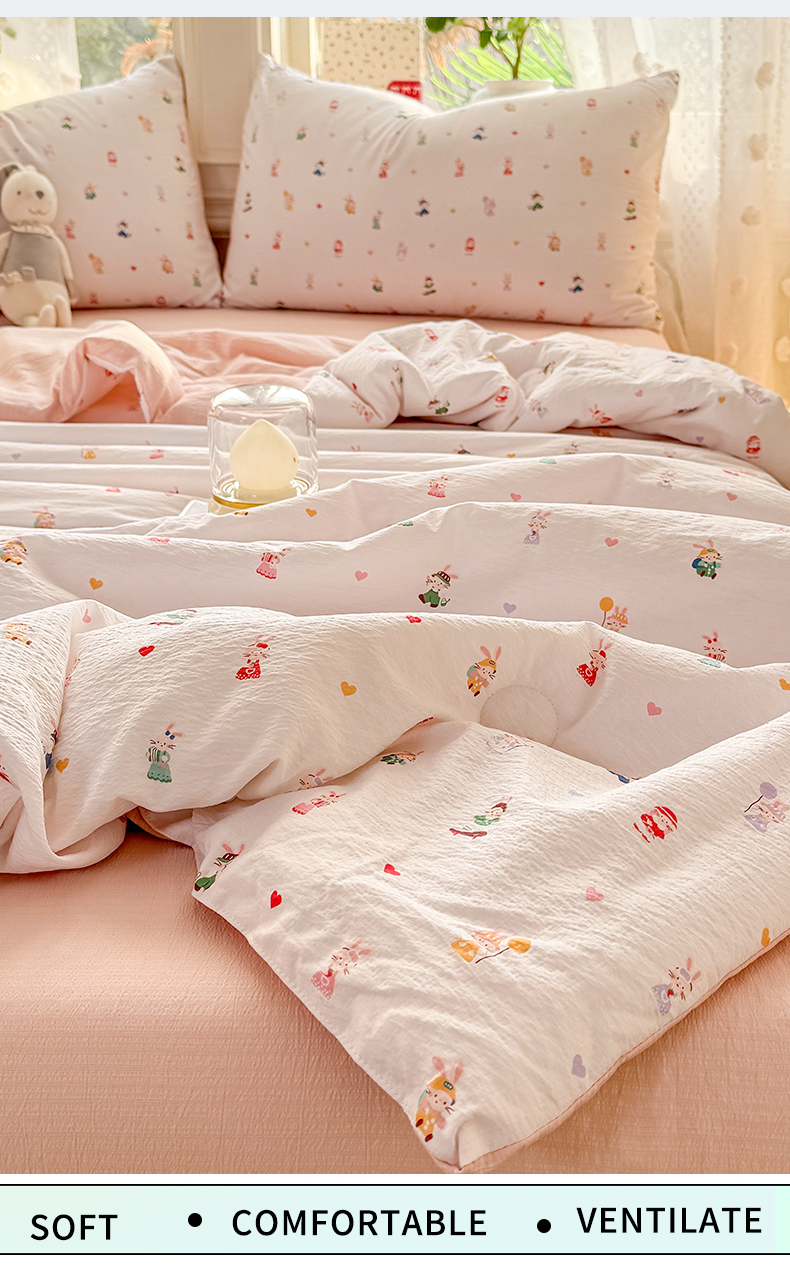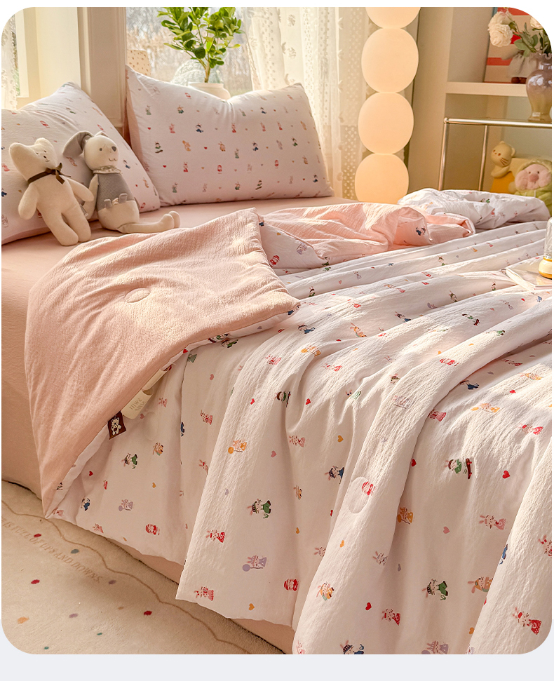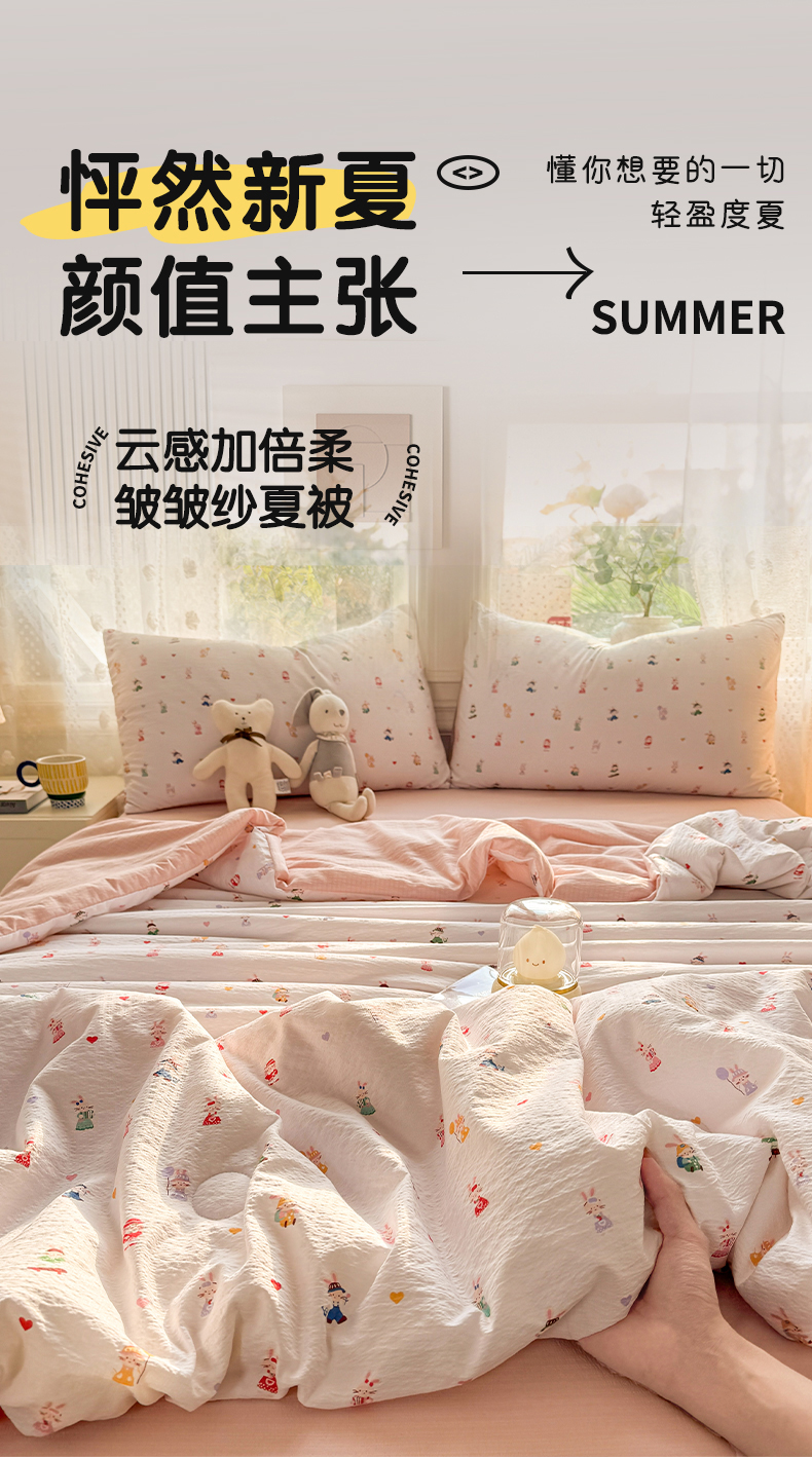 丽美人家纺 2026春夏新款简单款皱皱纱夏被夏凉被空调被 桃心萌兔集
