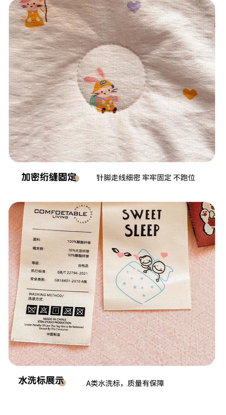 当前位置: 91家纺网 > 商品网购 > 被子 > 夏被 > 丽美人家纺 2026春夏新款简单款皱皱纱夏被夏凉被空调被 桃心萌兔集