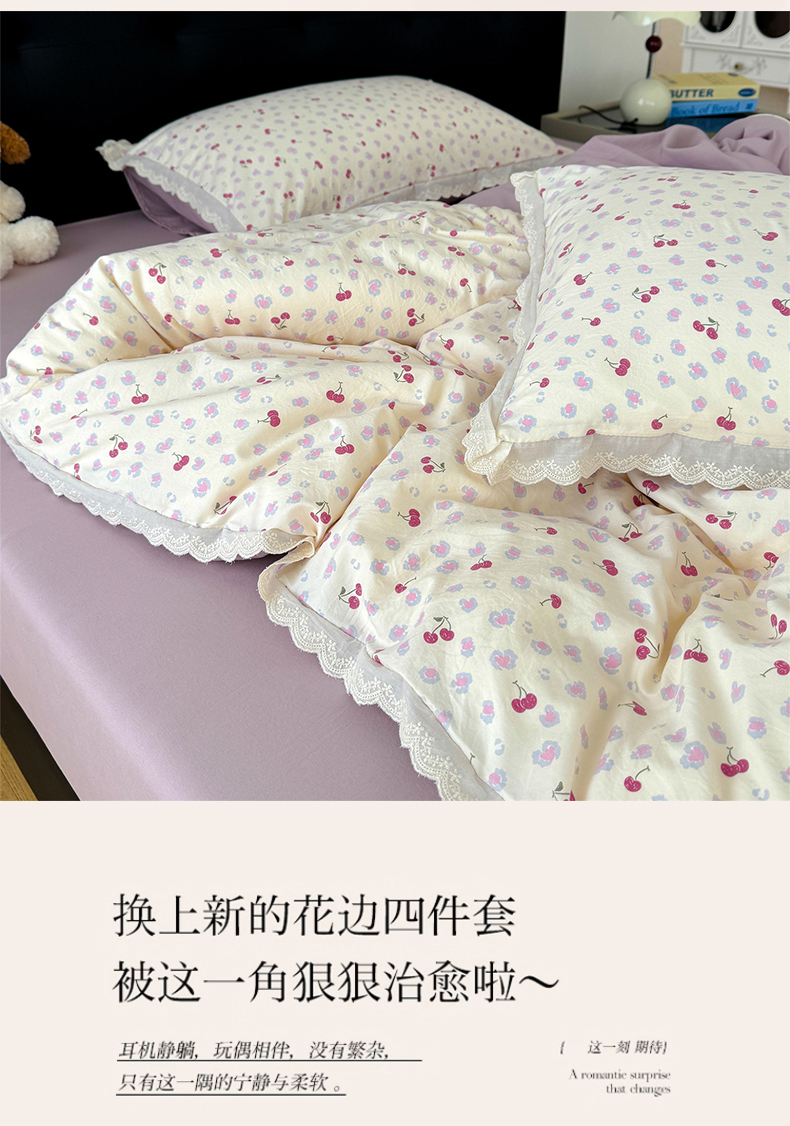 商品名称:铺尚美家纺 2026新款田园韩版花边款小碎花古法水洗仿棉A类云感棉四件套 暖暖
