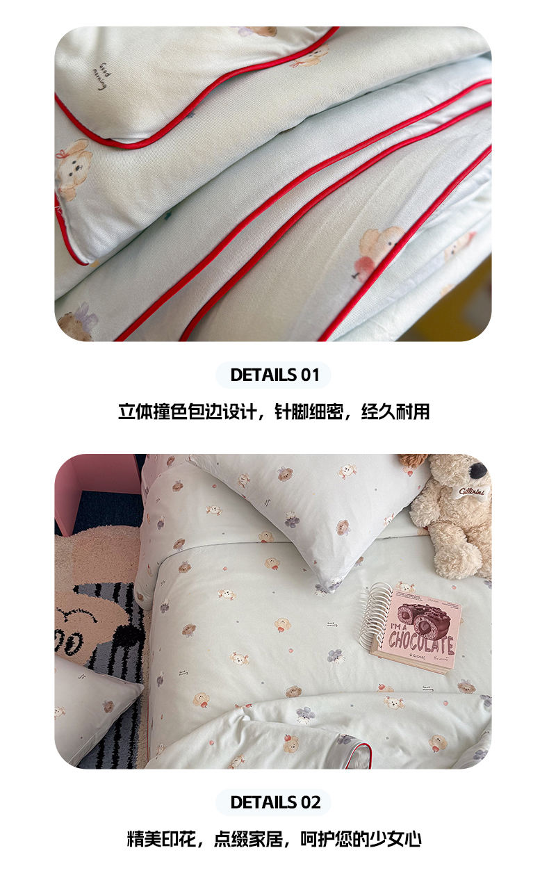 (总)暖生活 2026新款全棉大版双层纱贴布绣四件套,波点胖熊,红帽腊肠,星星凯蒂,樱桃甜兔