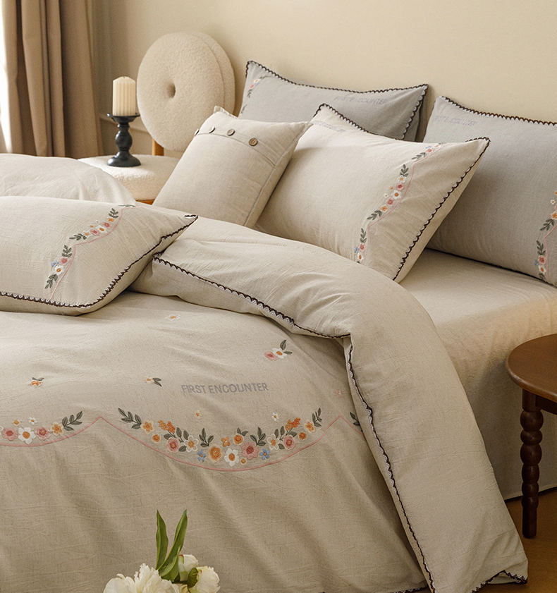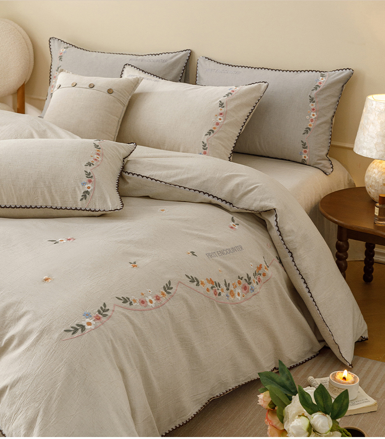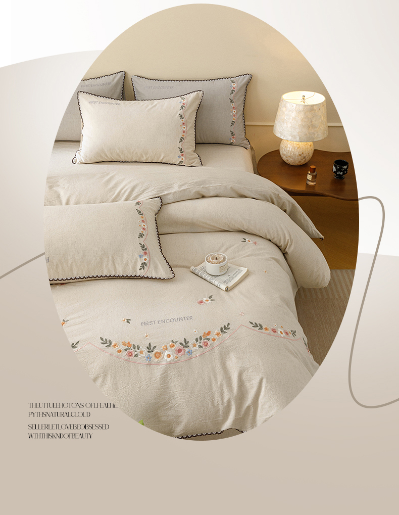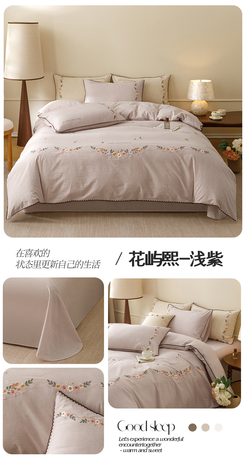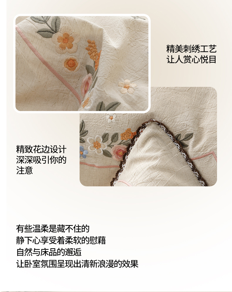 当前位置: 91家纺网 > 商品网购 > 床品套件 > 四件套 > 棉麻四件套 > 艾莱家纺 2026新款棉麻刺绣花边款四件套花屿熙 花屿熙-本色