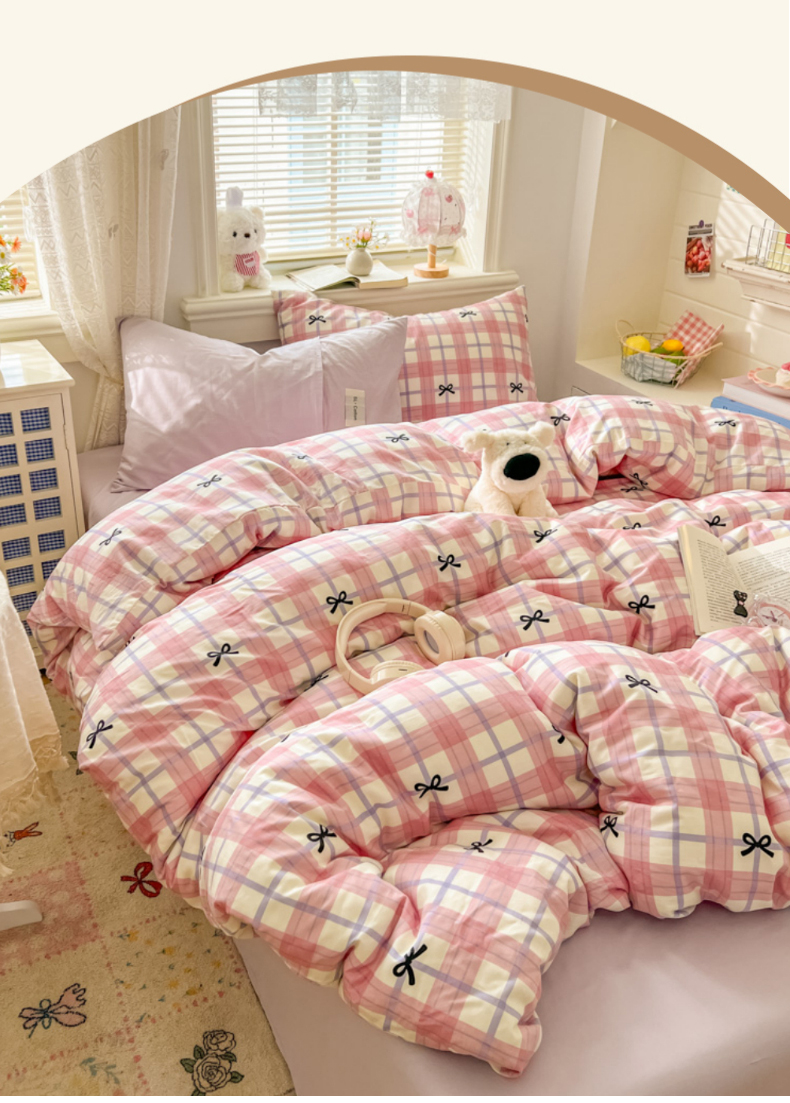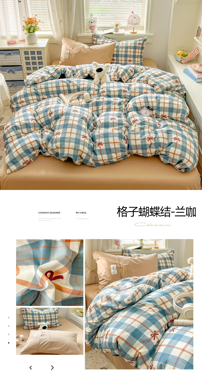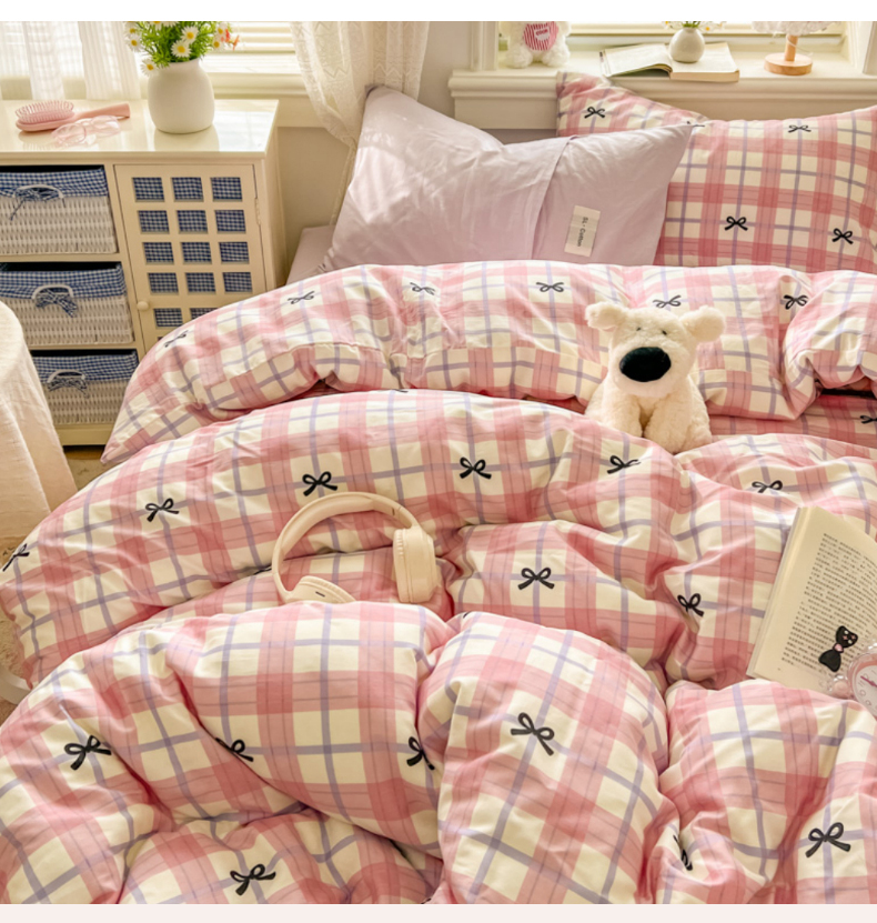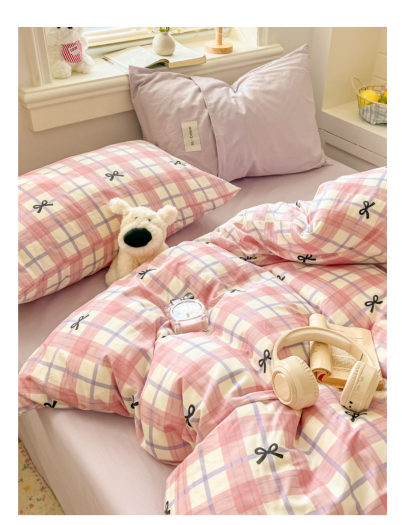 当前位置: 91家纺网 > 商品网购 > 床品套件 > 四件套 > 全棉普通四件套 > (总)欣宜家纺 2026新款lns博主风韩系蝴蝶结全棉纯棉四件套格子蝴蝶结
