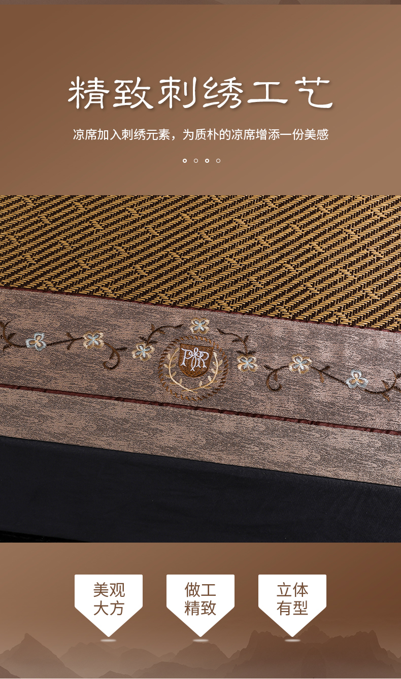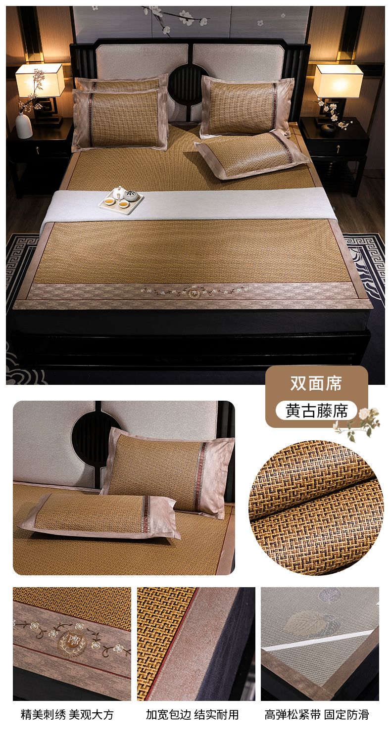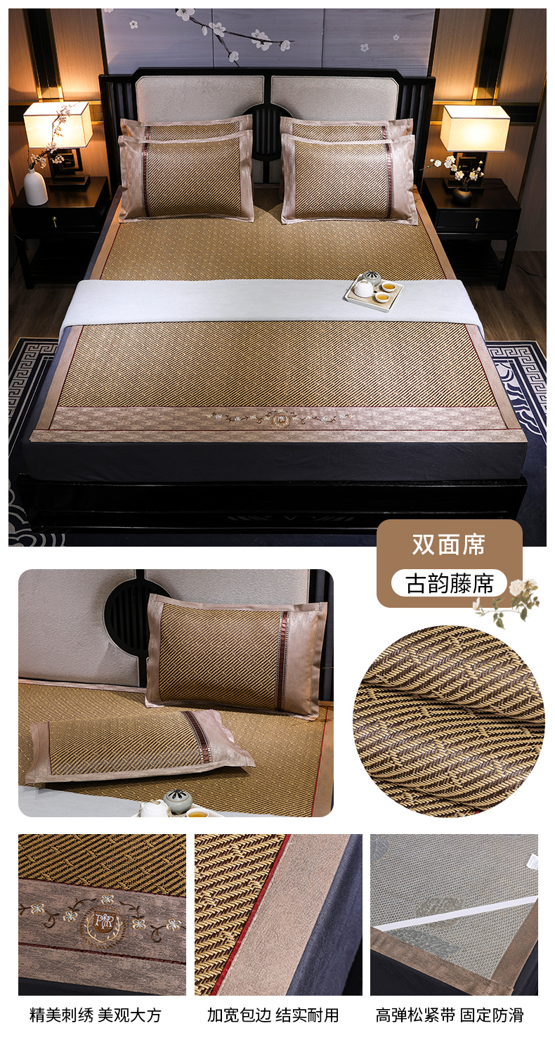 商品名称:小牛席业 2026新款绣花古藤凉席【双面席】凉席藤席冰藤席竹席空调席草席冰丝席豆豆席乳胶席三件套 古韵藤席双面席