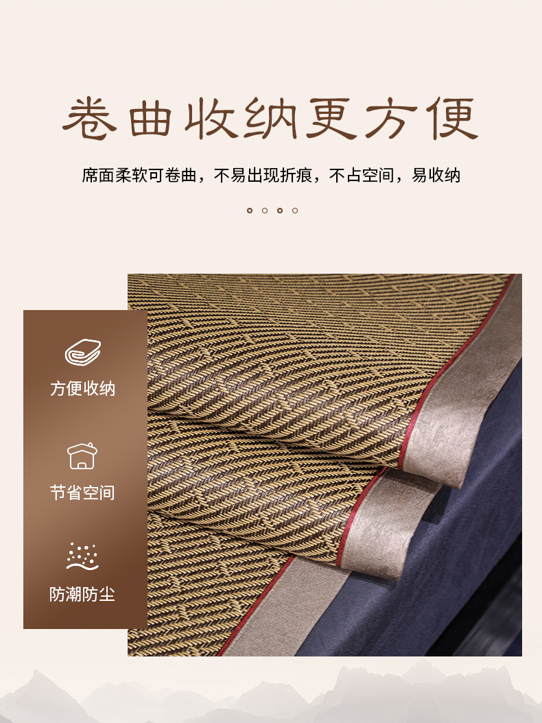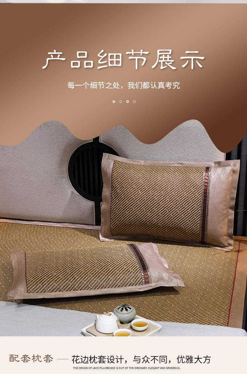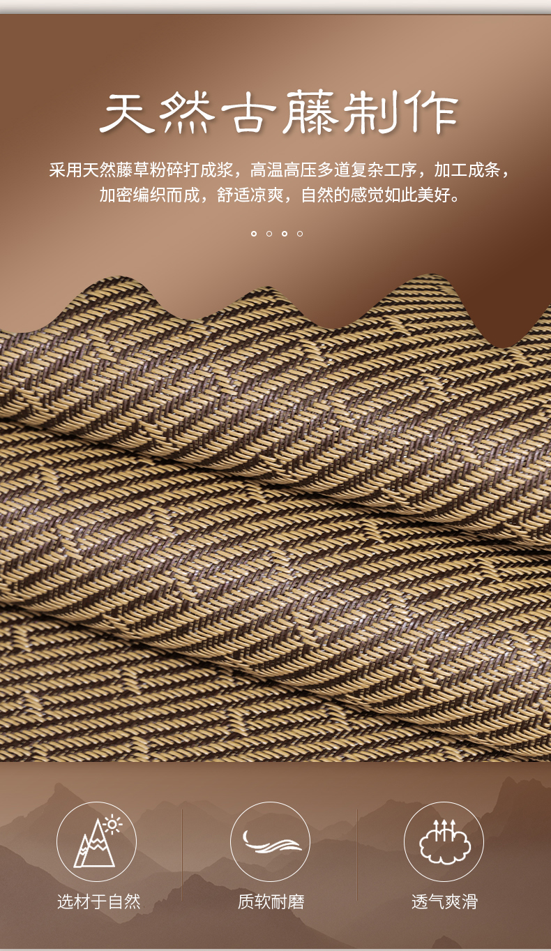 商品名称:小牛席业 2026新款绣花古藤凉席【双面席】凉席藤席冰藤席竹席空调席草席冰丝席豆豆席乳胶席三件套 古韵藤席双面席