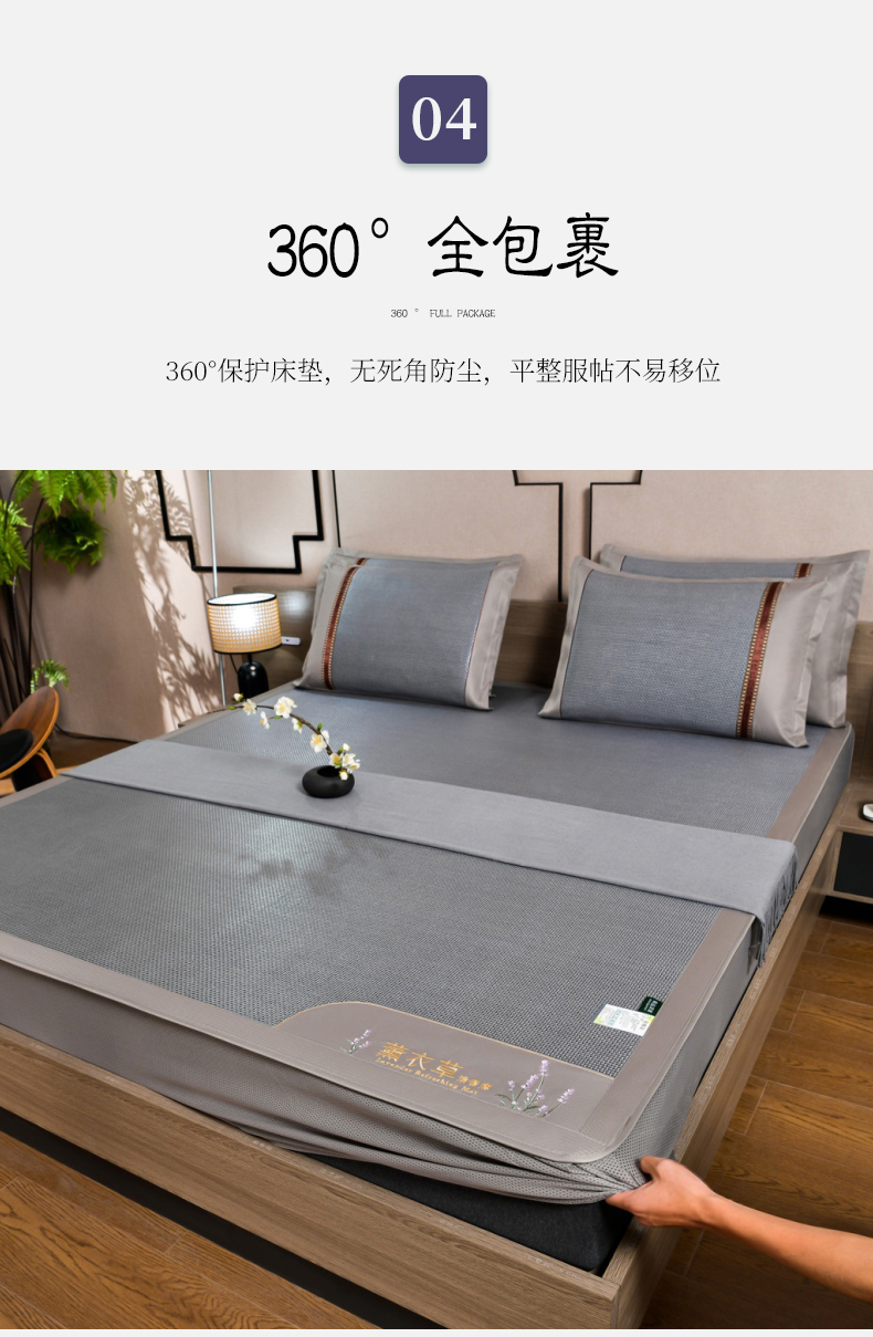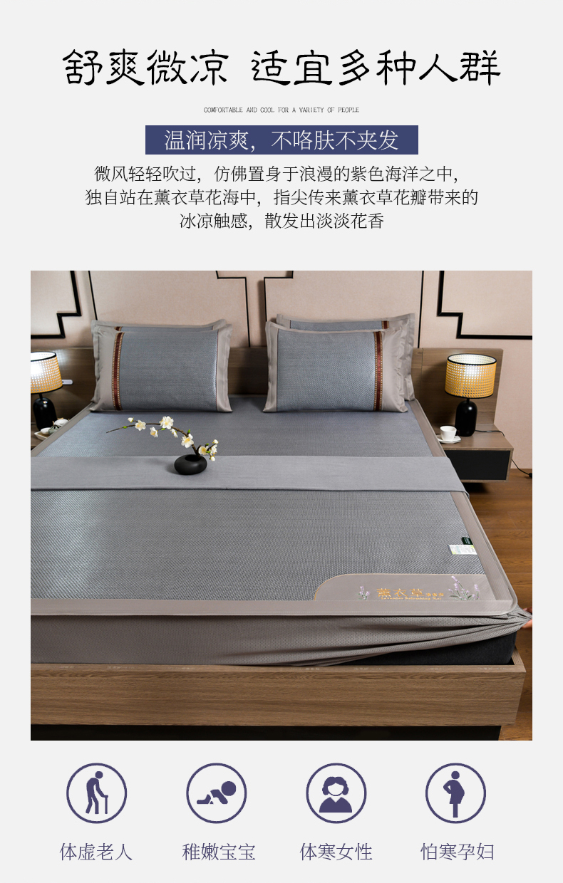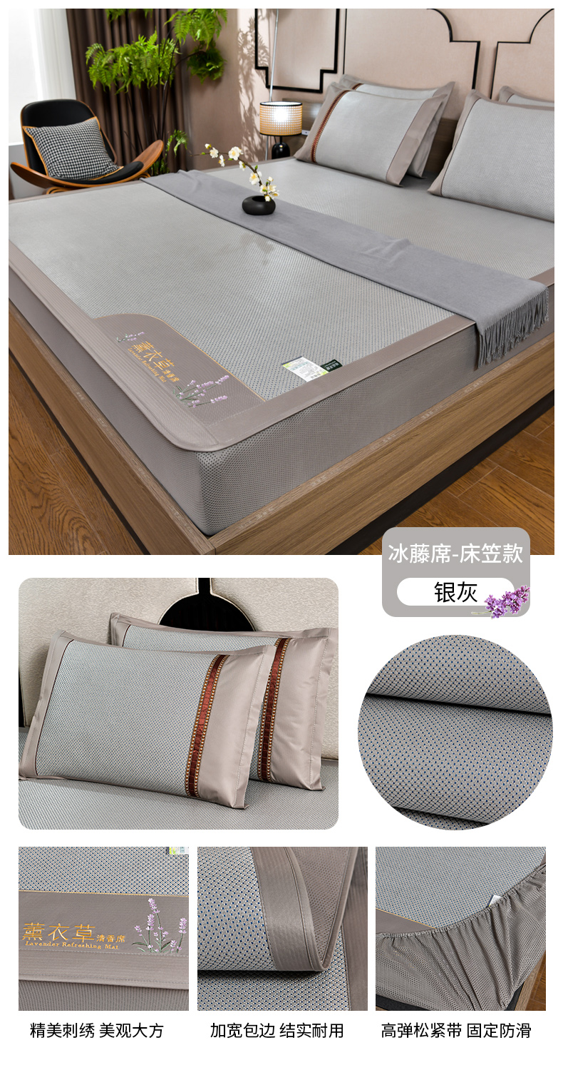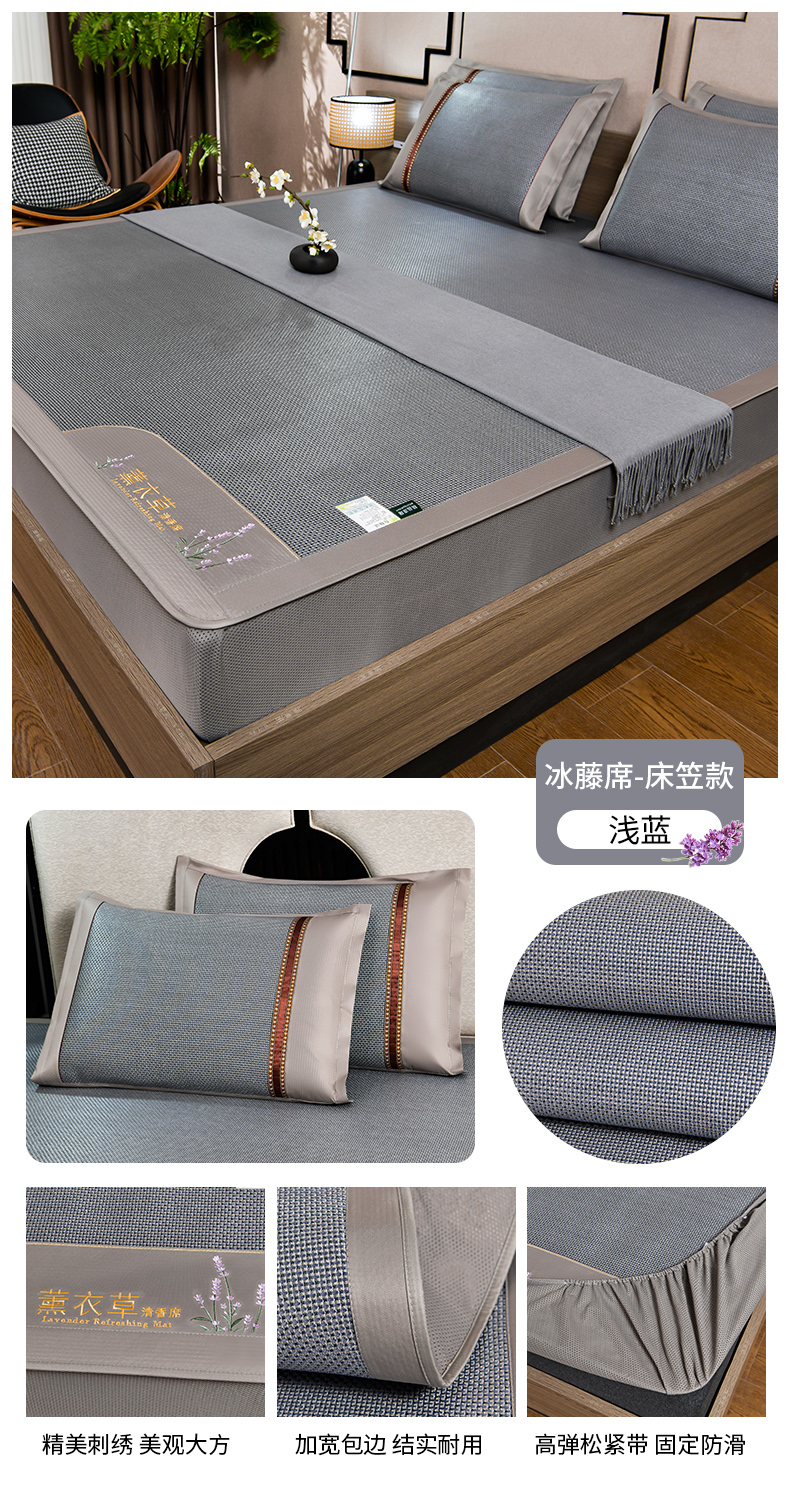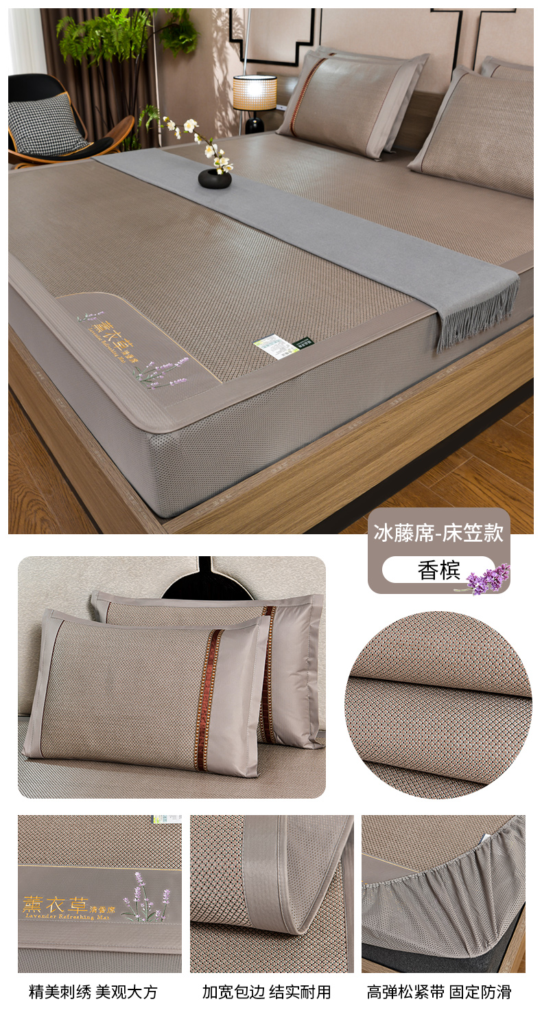 商品名称:(总)小牛席业 2026新款薰衣草冰藤席系列-床笠款(冰藤席面)凉席藤席冰藤双面席冰丝席竹席凉席空调席草席三件套
