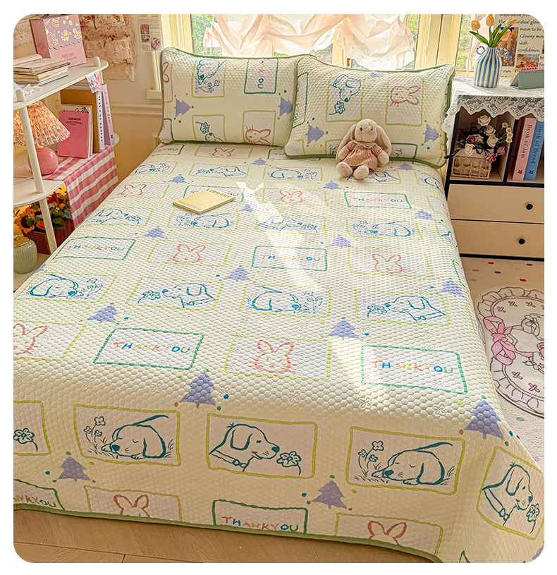 当前位置: 91家纺网 > 商品网购 > 床品套件 > 四件套 > 其它四件套 > 梵克保罗 2026新款金豆豆床盖A类针织棉印花大版卡通床盖三四件套 兔兔和狗