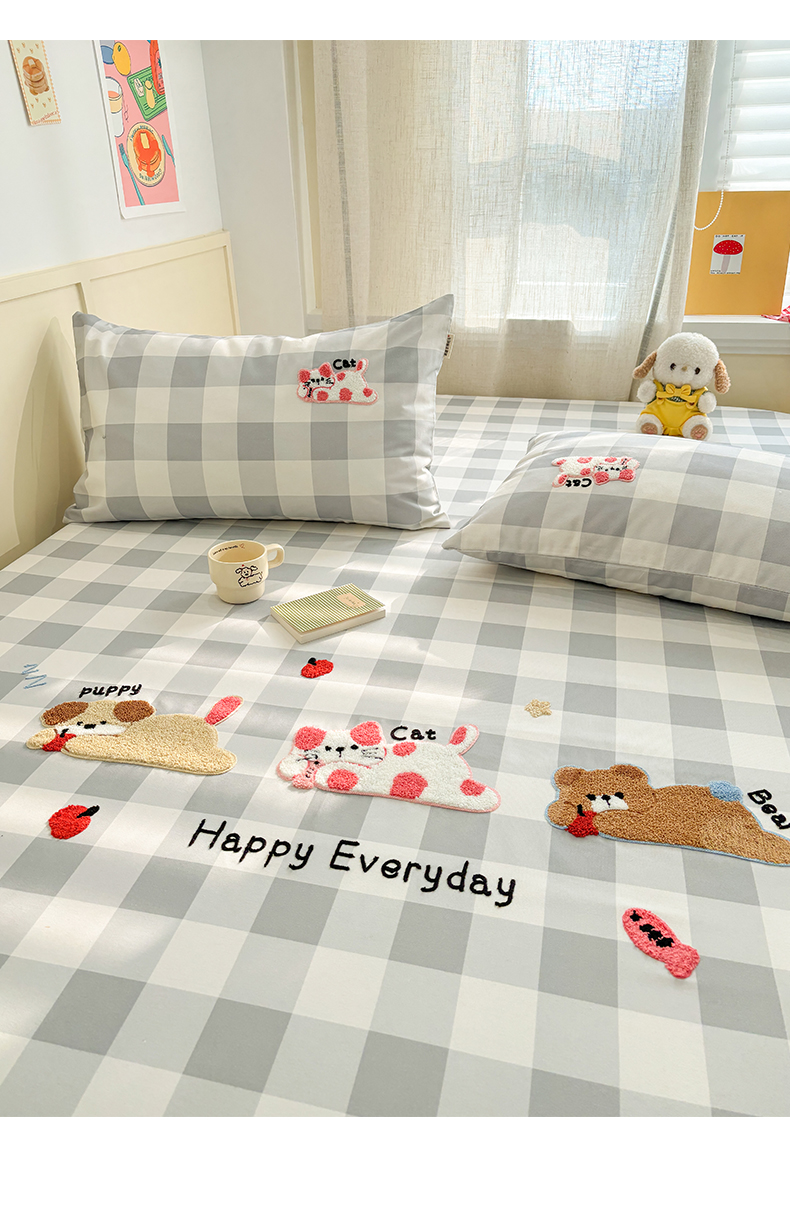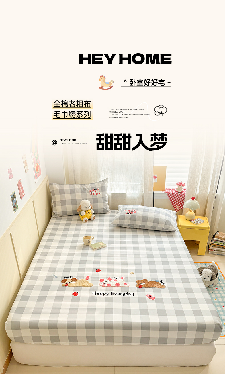 当前位置: 91家纺网 > 商品网购 > 床上用品 > 凉席 > 其他凉席 > 雅居纺家纺 2026新款毛巾绣全棉纯棉老粗布席子凉席床笠床单 灰格趴趴宠